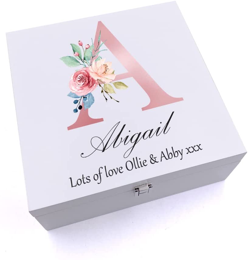 ukgiftstoreonline Personalised Pink Letter Monogram Keepsake Wooden Box