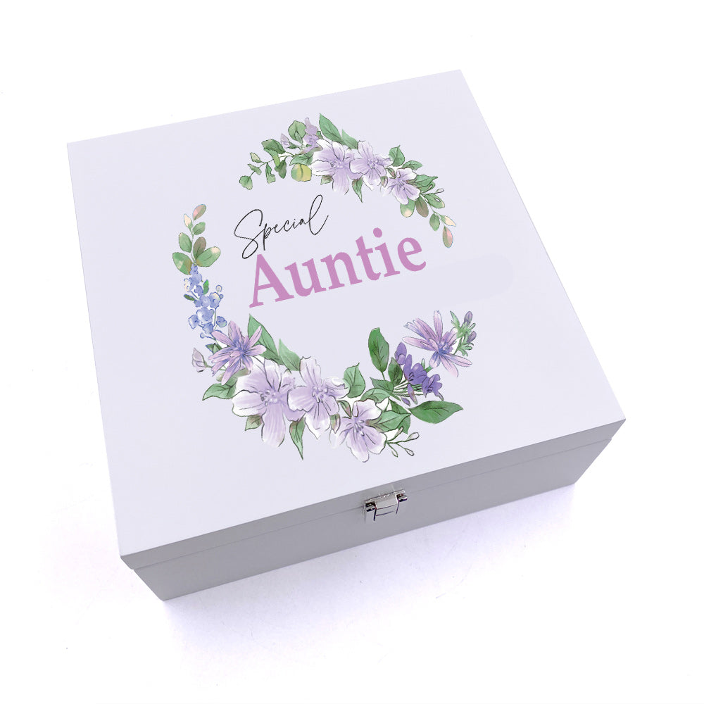 Perfect to fill with gifts, photos and other bits and bobs. Made from a white coated wood with your details printed directly onto the lid using the latest printing technology. The inside of the box has a natural wood finish. The boxes have beautiful chrome plated metal hinges and clasp to hold shut ensuring they last for years. Dimensions: H8 x W20 x D20cm