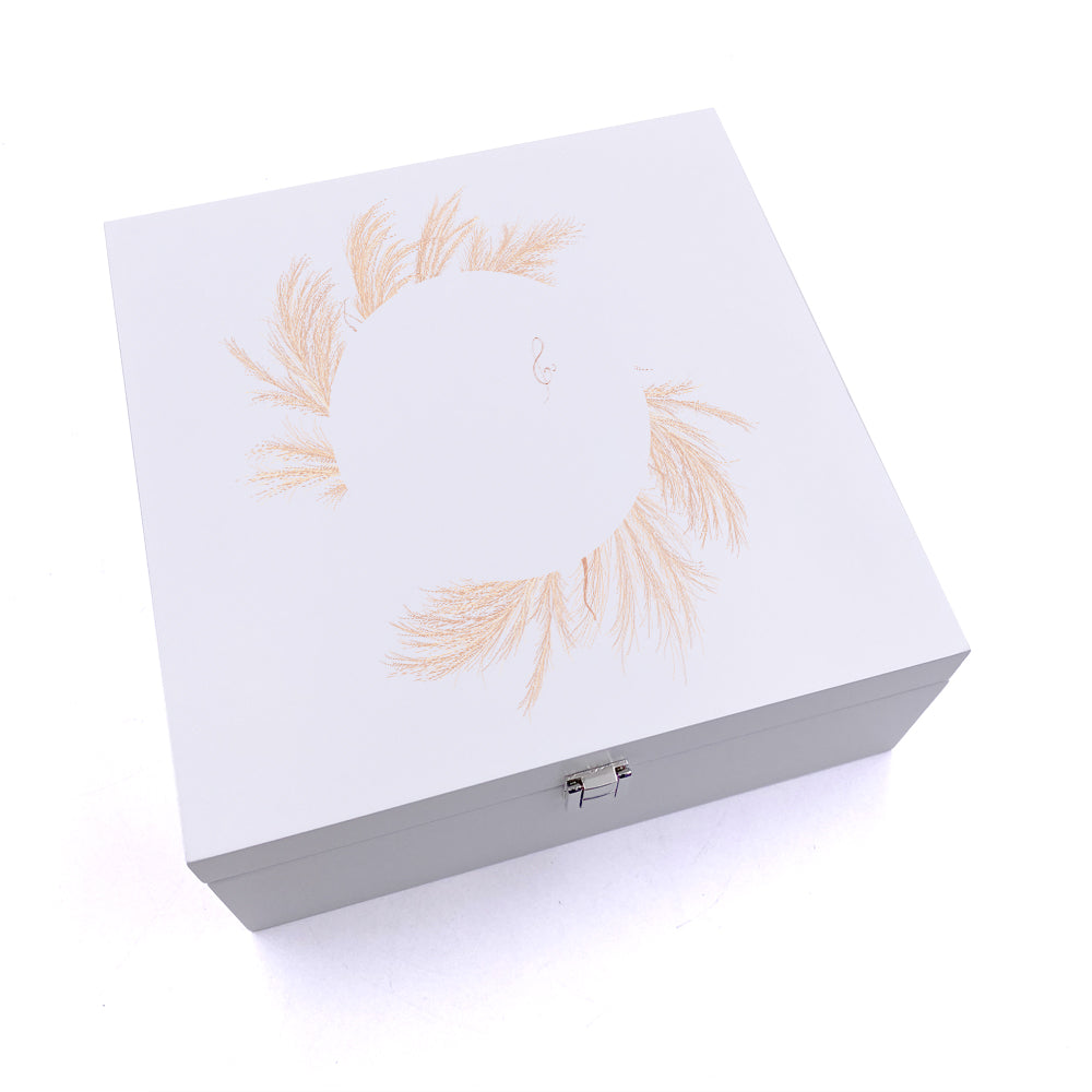 If you are looking for an extra special gift then these keepsake boxes are sure to be cherished and filled with mementos. Perfect to fill with gifts, photos and other bits and bobs. Made from a white coated wood with your details printed directly onto the lid using the latest printing technology. The inside of the box has a natural wood finish. The boxes have beautiful chrome plated metal hinges and clasp to hold shut ensuring they last for years. Dimensions: H8 x W20 x D20cm