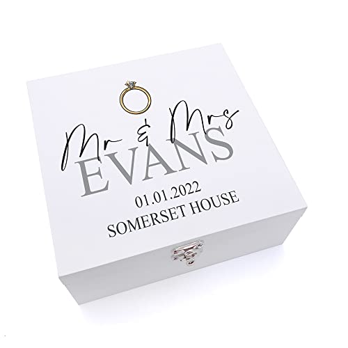 If you are looking for an extra special gift then these keepsake boxes are sure to be cherished and filled with mementos. Perfect to fill with gifts, photos and other bits and bobs. Made from a white coated wood with your details printed directly onto the lid using the latest printing technology. The inside of the box has a natural wood finish. The boxes have beautiful chrome plated metal hinges and clasp to hold shut ensuring they last for years. Dimensions: H8 x W20 x D20cm