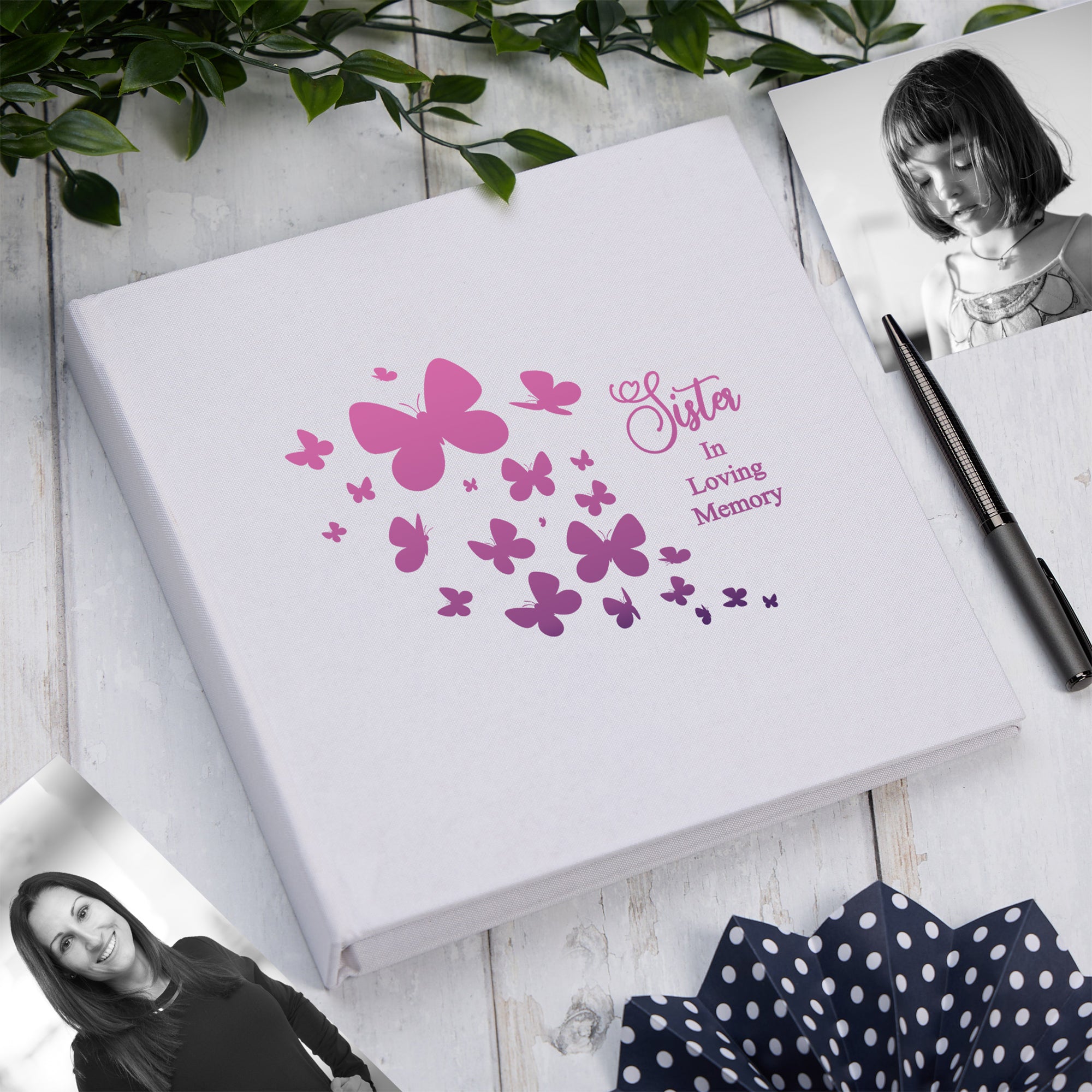 Large Book Bound Sister In Loving Memory Butterfly Design Memorial Remembrance Photo Album