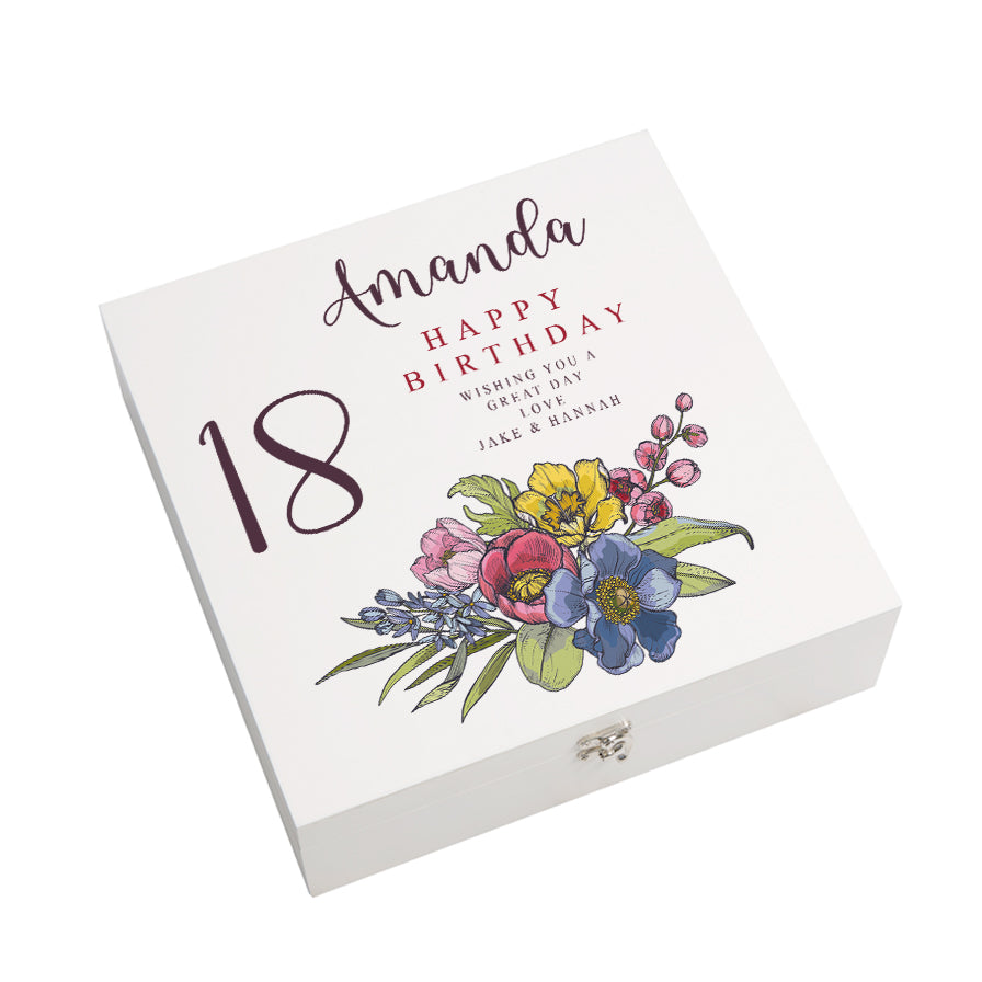 Personalised 18th Birthday Keepsake Box Customised With Flowers and Sentiment