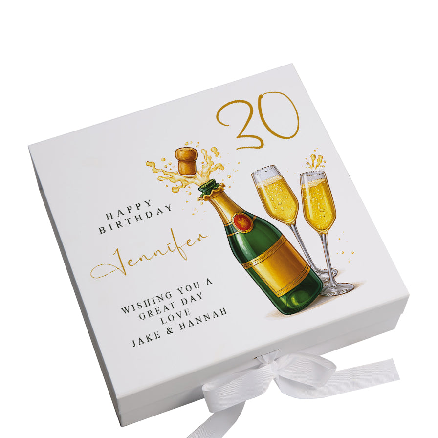 A premium keepsake box specifically designed for 30th birthdays, featuring a champagne bottle design and customizable sentiment. It...