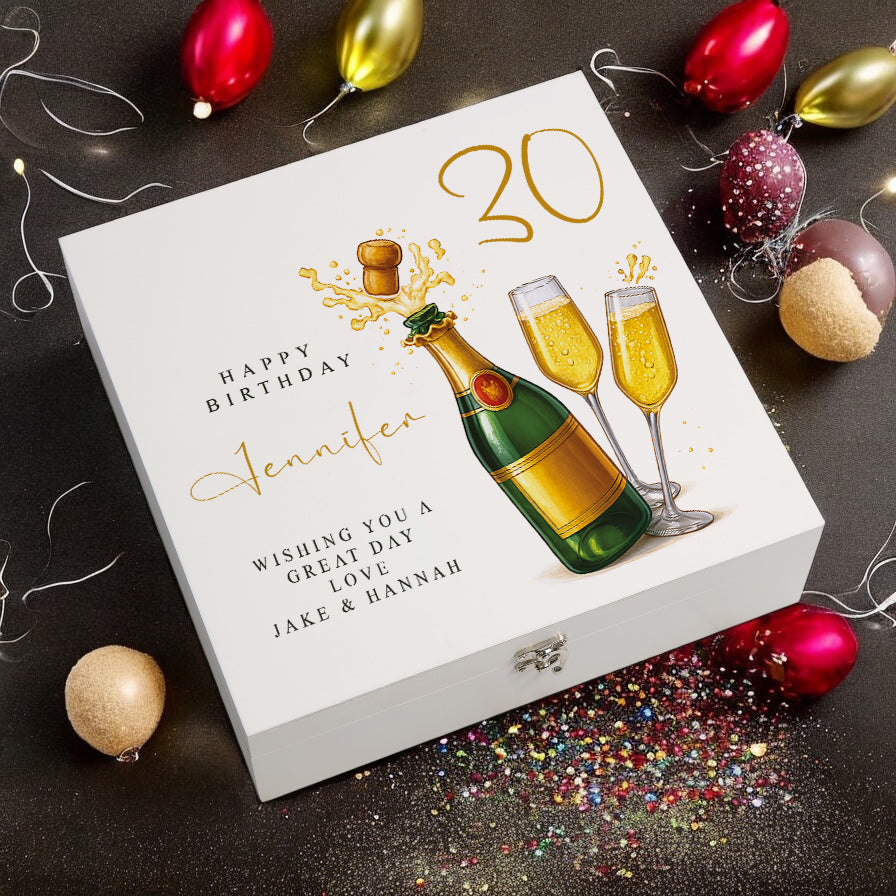Personalised 30th Birthday Keepsake Box Customised With Champagne Bottle and Sentiment