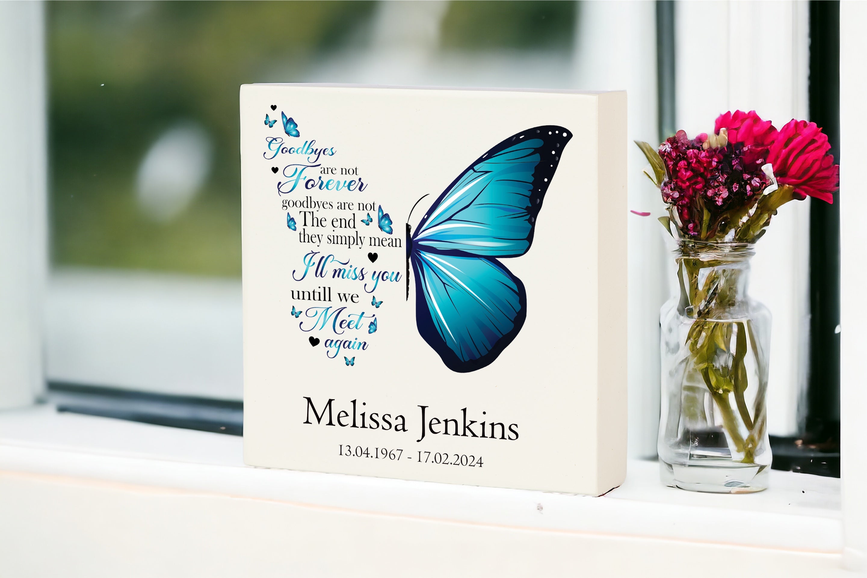 Personalised Graveside Remembrance Plaque Ornament With Blue Butterfly