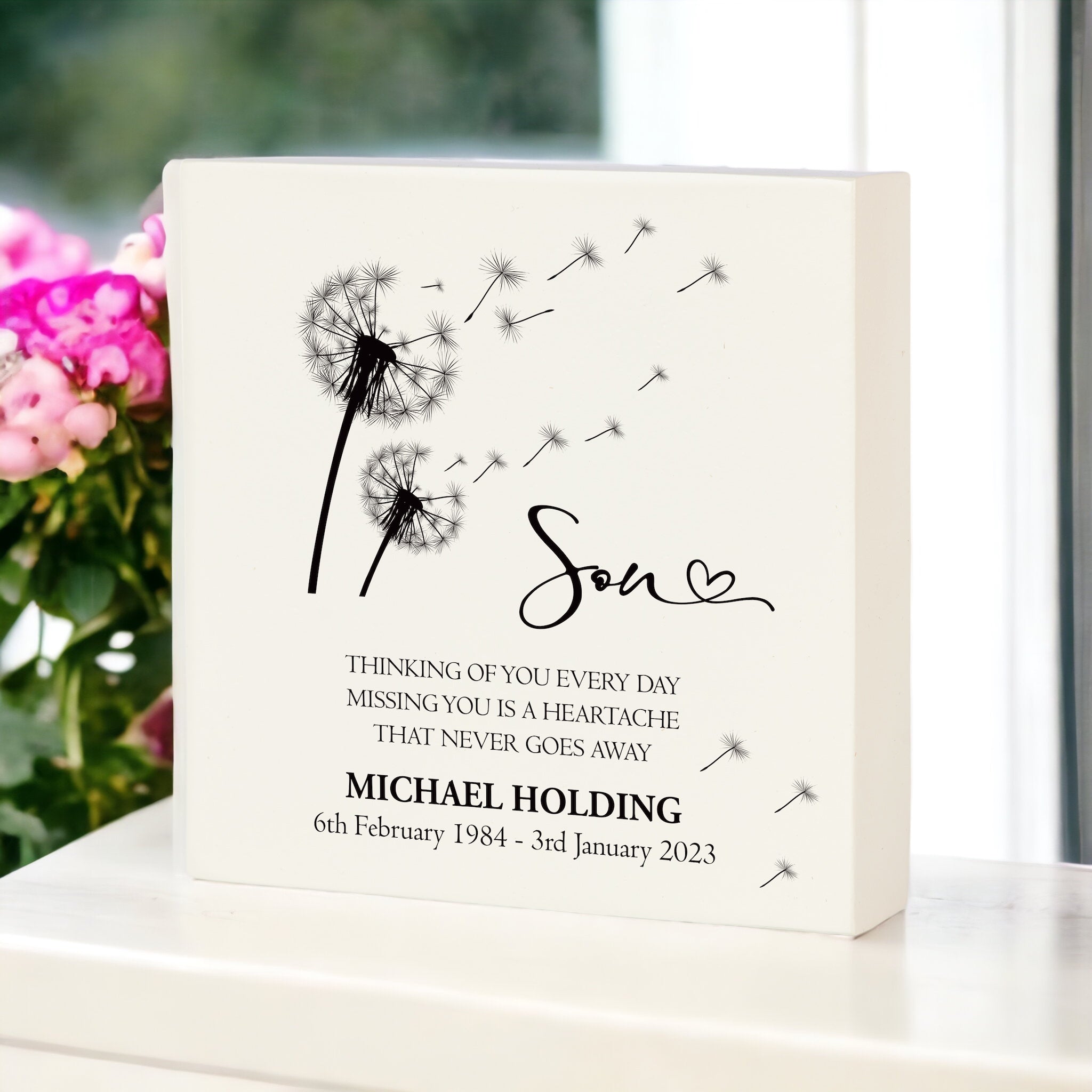 A Personalised Son Graveside Remembrance Plaque Ornament is the perfect tribute to the memory of a beloved Son . This in-loving-memory ornament features personalised text, making it a beautiful keepsake to honour your Son and keep their memory alive. Its thoughtful design and elegant finish are sure to make it a treasured reminder for years to come.