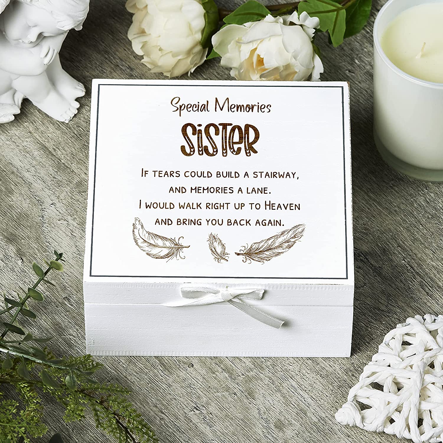 Elegant Sister Memory Keepsake Box With Feather Design High-quality and spacious, made with durable wood Perfect for...