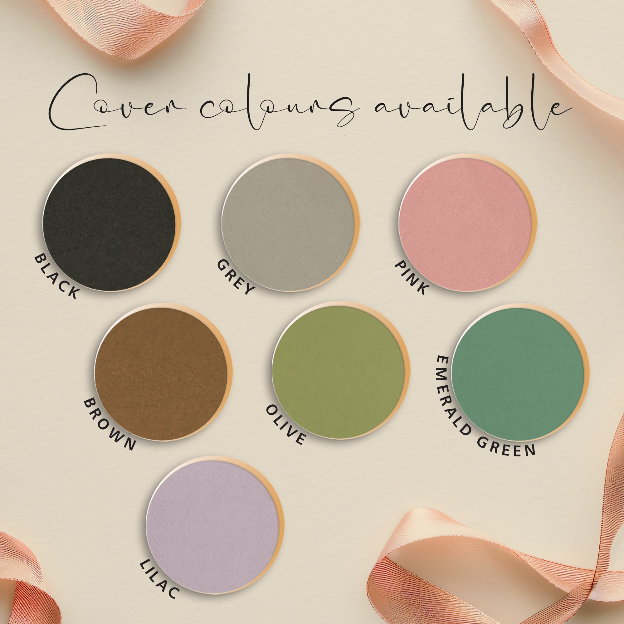 Overall album sizes are 19cm x 23cm for the 6x4 album and 22cm x 27cm for the large one. Each album is also available in a variety of colours and we can print on these in various colour foils as shown.