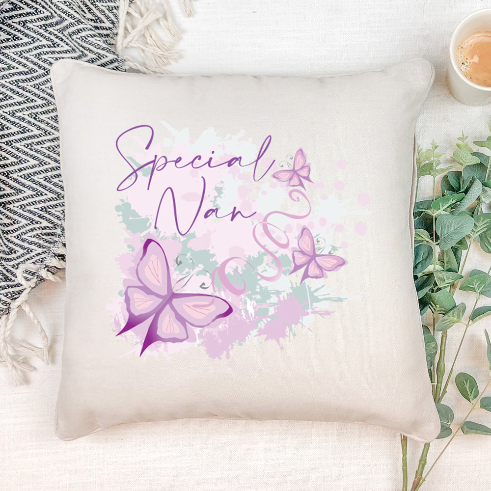 Personalised Special Nan Pink and Purple Butterfly Cushion Gift.