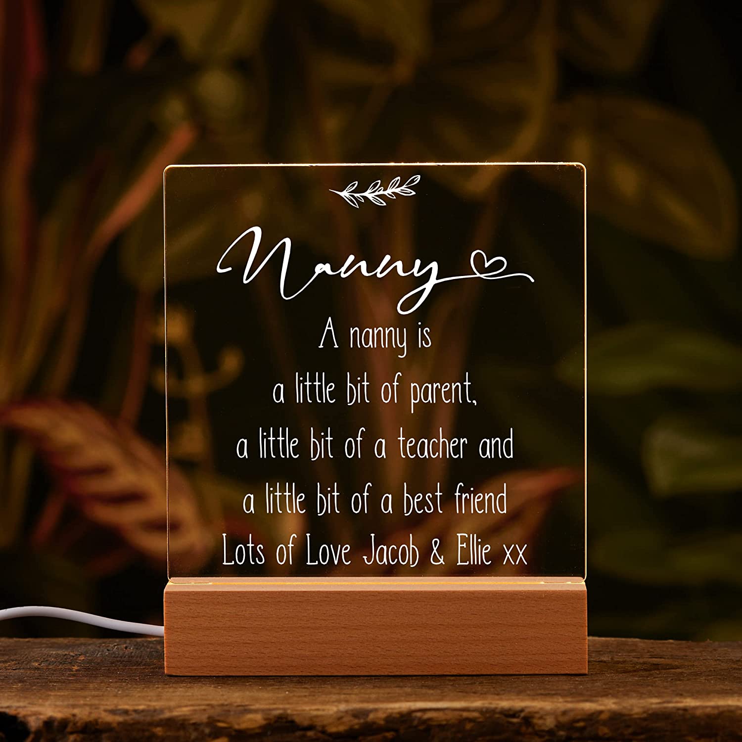 Personalised Nanny Sentiment LED Night Lamp Keepsake
