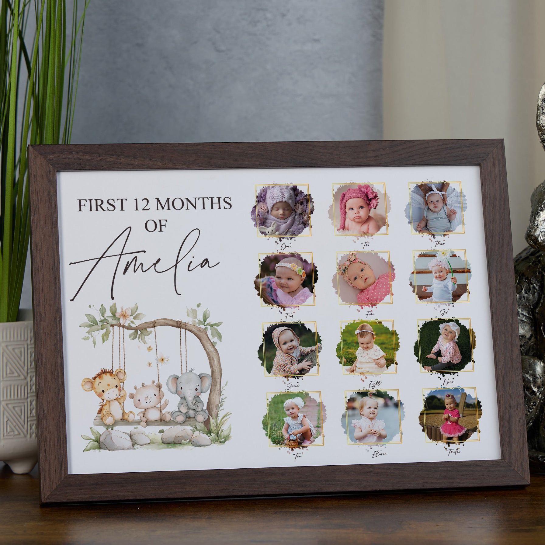 Celebrate your baby’s milestones with this Customized Baby's First 12 Months Photo Frame. Designed to showcase a special photo for each month, this personalised framed print creates a unique 12-month memory display. Crafted to highlight your baby’s growth and precious moments, it makes a thoughtful keepsake for parents and a charming addition to any nursery. The high-quality frame ensures your memories are beautifully preserved and easily admired throughout the year. Perfect as a gift or for your own family, this frame turns every month into a treasured highlight of your baby’s first year.