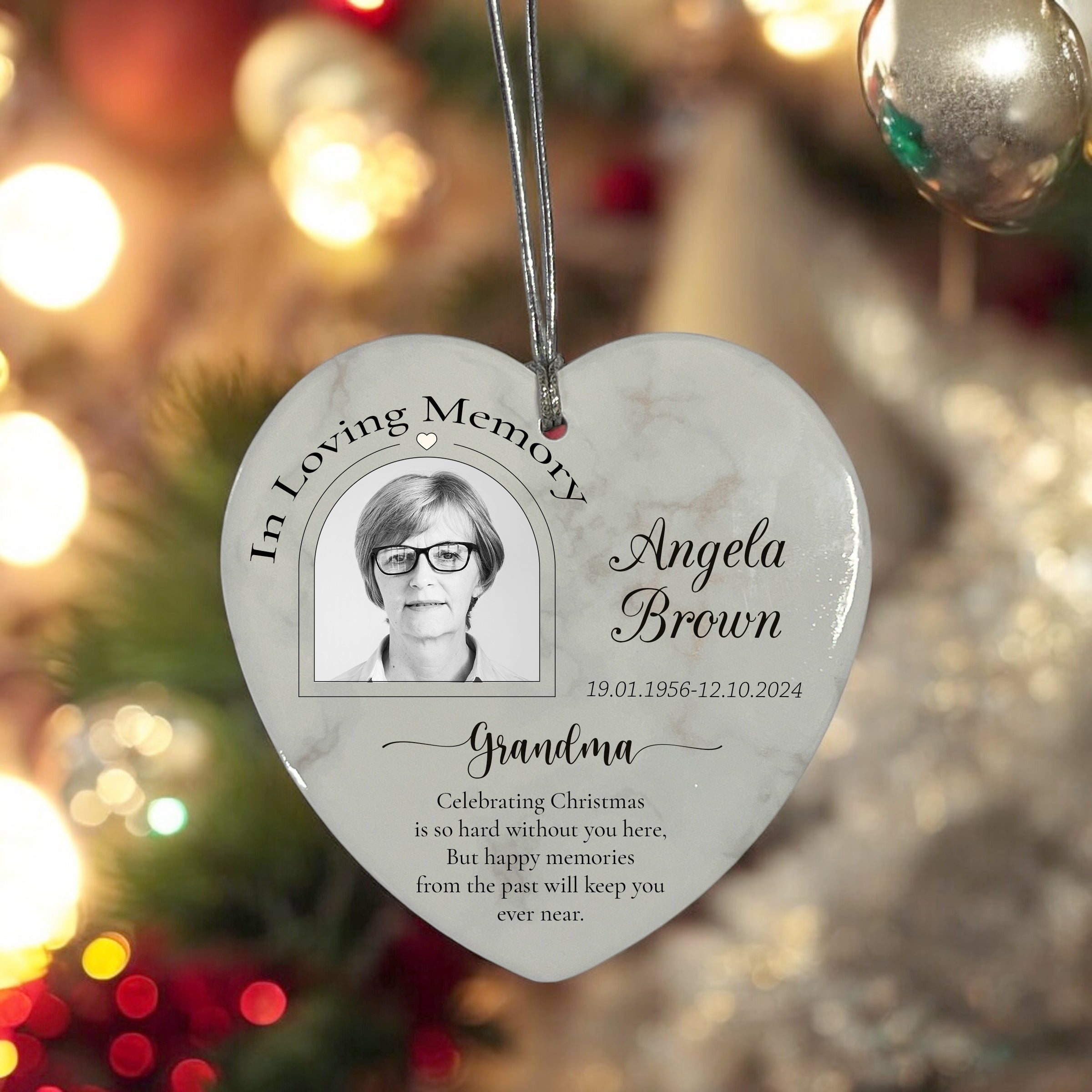 In Loving Memory At Christmas Hanging Ceramic Heart Decoration-Grandma