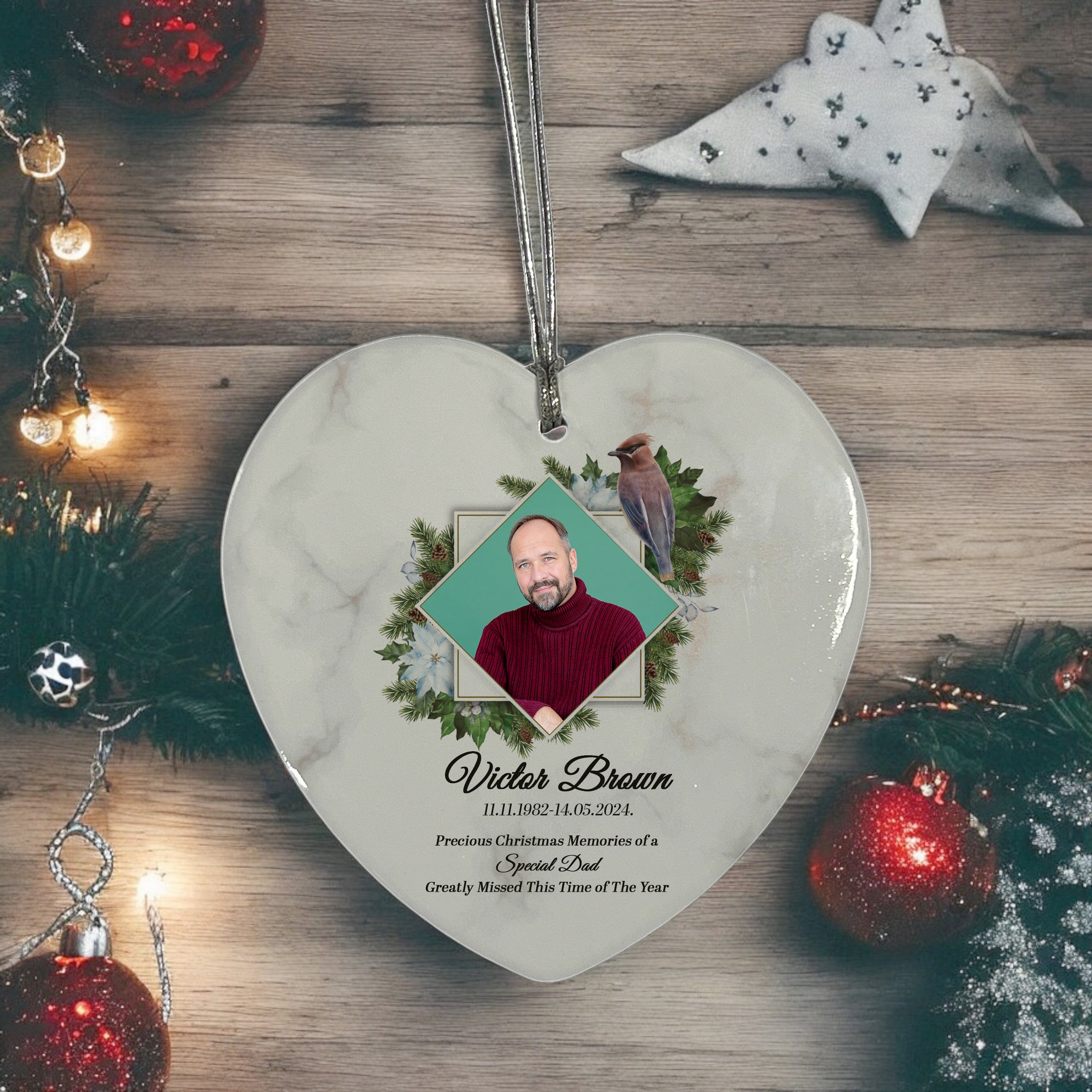 Large Hanging Ceramic Heart Christmas Memorial Decoration-Dad