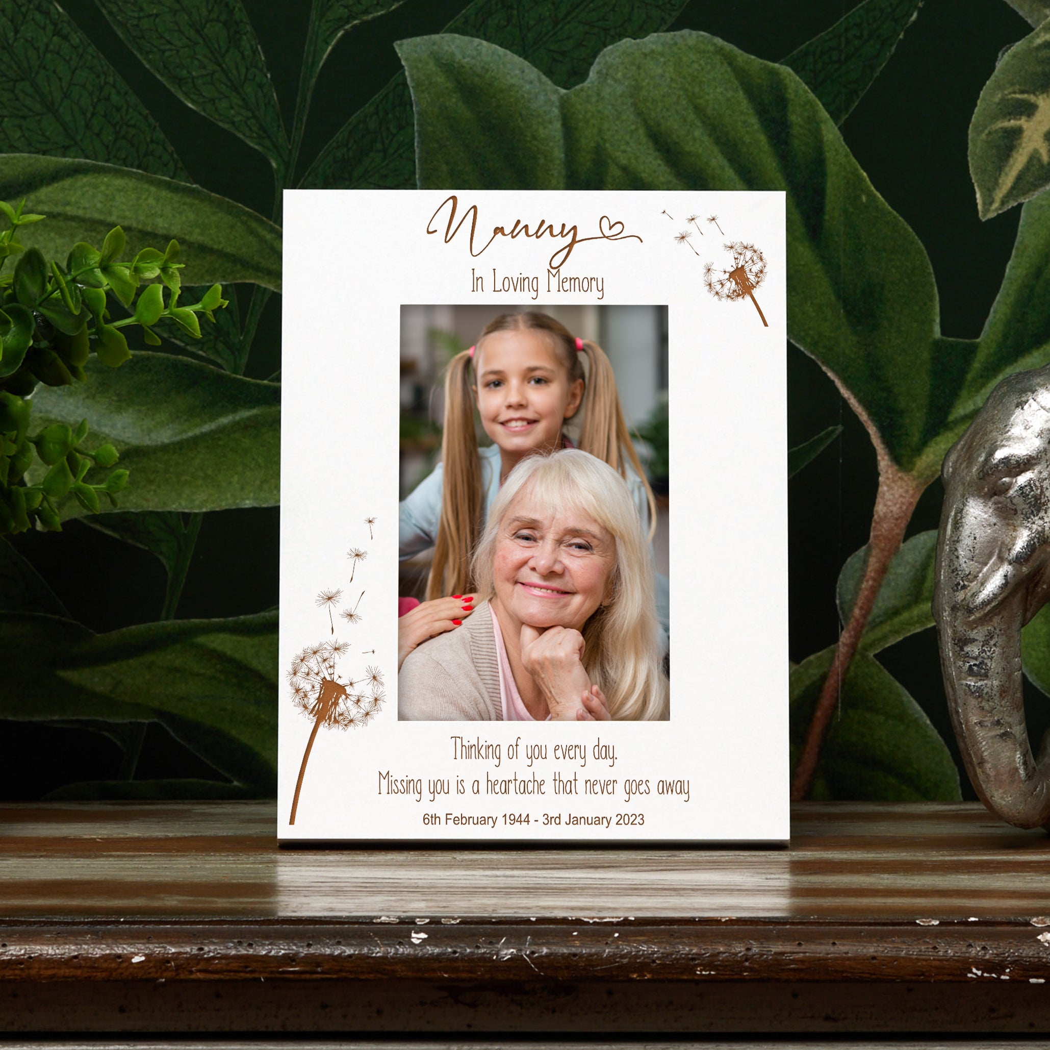 Nanny Remembrance White Photo Frame Personalised Portrait With Dandelions