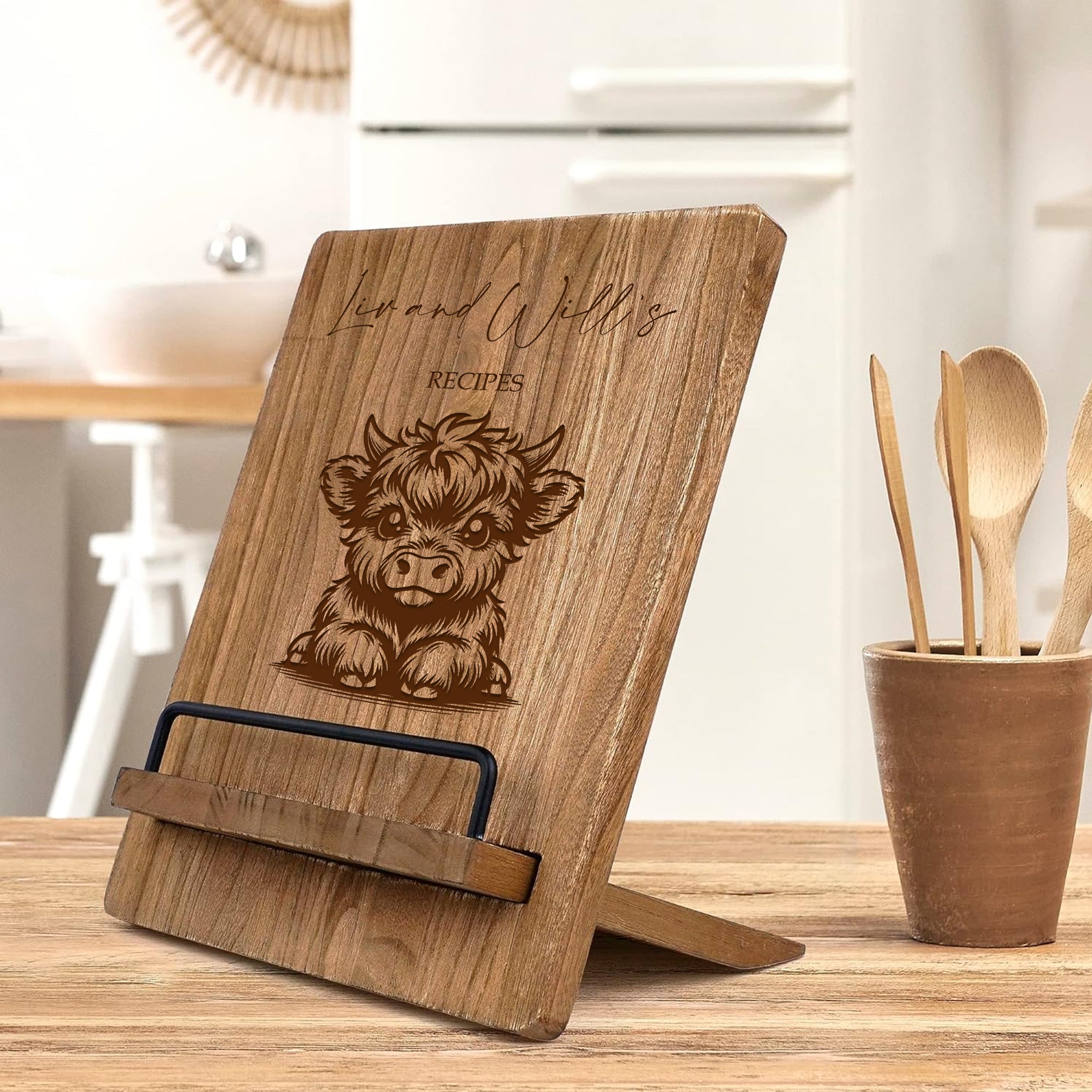 Wood Cookbook Stand: The cookbook holder made from fir wood free your hands when cooking. The front metal support keeps the recipe page stable for clear reading.