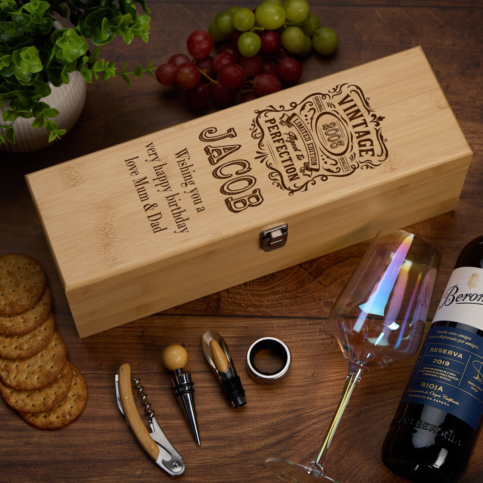 For the personalisation we just need the year, e.g. 2003, a name e.g. Jacob and short sentiment e.g. Lots of love Mum and Dad