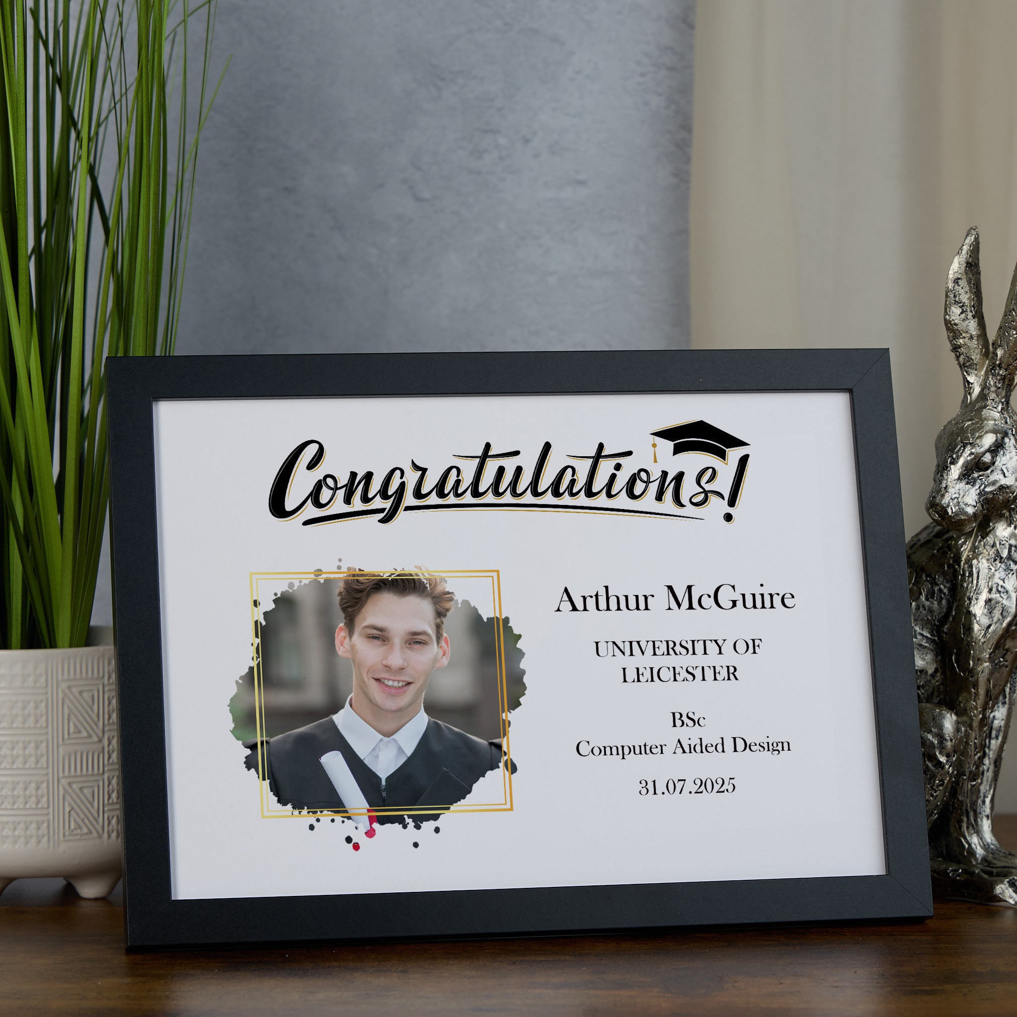 We just need a name, university name, course name & date for personalisation along with your own photo which we print onto the insert.