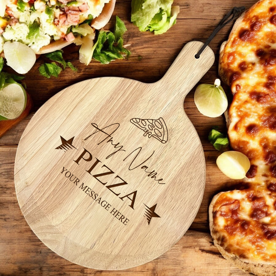 This personalised pizza serving board, measuring 40.5x30x1.2cm, is crafted from high-quality wood to provide a durable and attractive surface for serving your favourite pizzas. Its generous size accommodates a variety of pizza sizes, making it ideal for casual dinners or special occasions. Customisable with names, dates, or messages, it adds a thoughtful and unique touch, perfect for couples, new homeowners, birthdays or anniversary gifts. Combining practicality with personalised charm, this board enhances any pizza night experience while serving as a memorable keepsake.