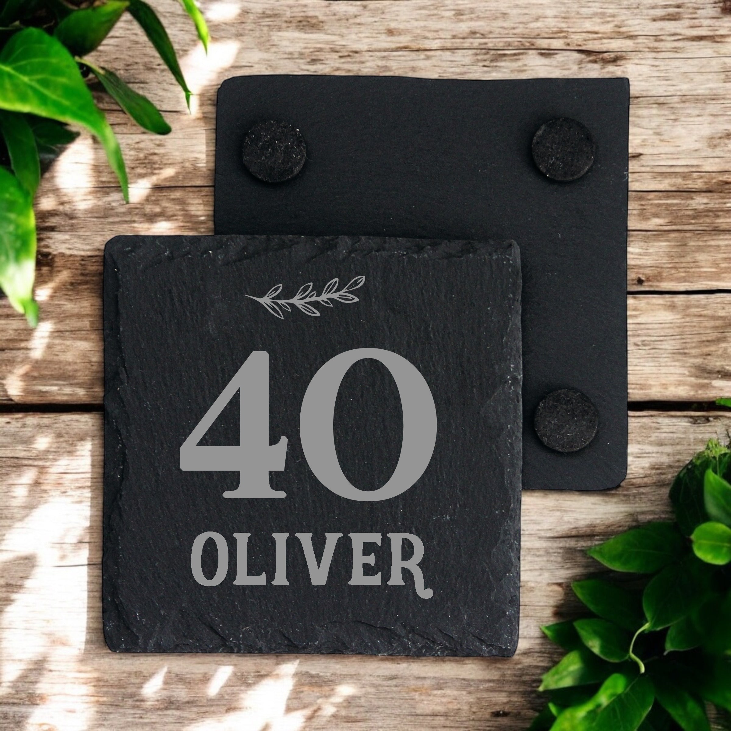 Personalised Elegant 40th Birthday Slate Stone Drink Coaster With any Name The slate measures 10cm and comes foam...