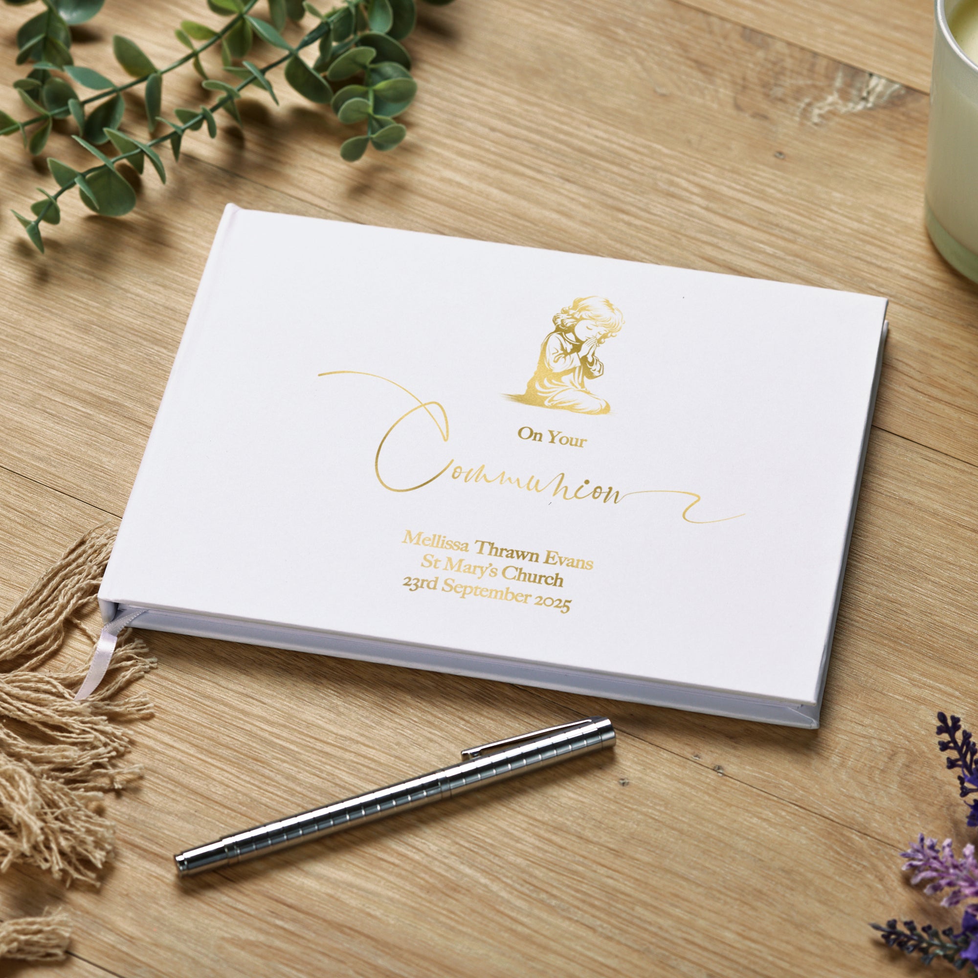 Elegantly designed Personalised Girl Communion Guest Book.  Capture and preserve your cherished Communion memories with our Personalised Communion Guest...