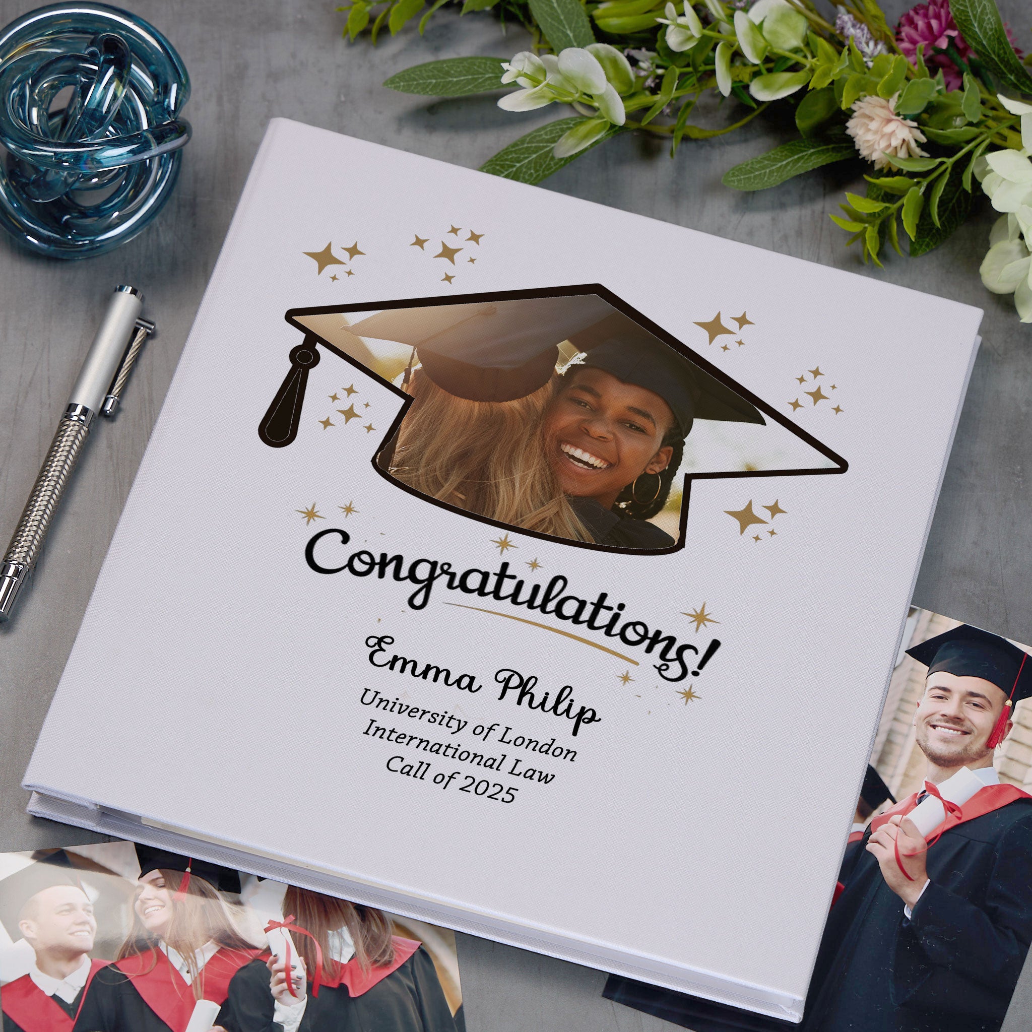 Personalised Large Linen Congratulations Graduation Photo Album Elegant Star Design Custom Photo Graduation Day Memory Storage Album