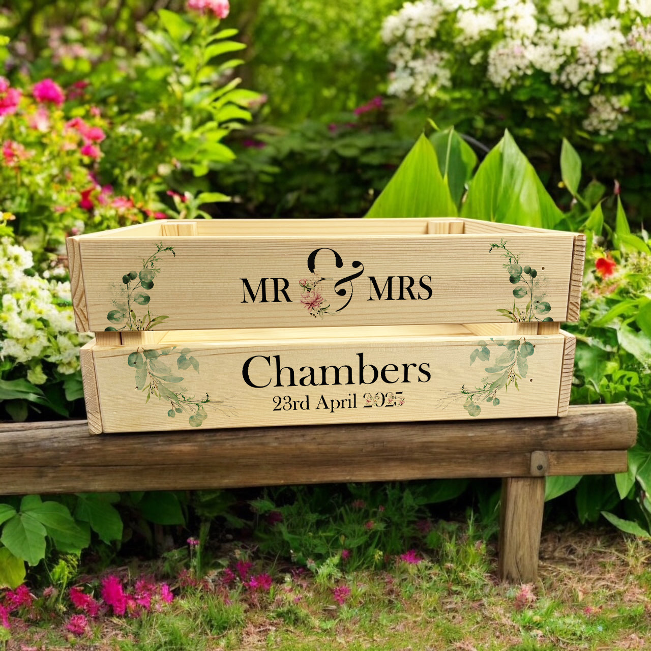 A personalised wedding crate box allows you to create a unique and memorable gift for the newlyweds. With this wooden Mr and Mrs crate, you can assemble a wedding hamper as a beautiful and functional decor piece to celebrate their special day.