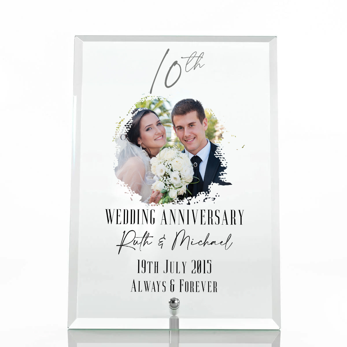 This personalised exclusive 10th anniversary keepsake gift glass plaque features a custom printed photo, creating a meaningful and lasting reminder of your special milestone. Expertly crafted from high-quality glass, the plaque is designed to offer both elegance and durability. You can select from two practical sizes—Small (6" x 4") and Large (5" x 7")—to ensure the perfect fit for any display setting. Ideal for commemorating your first year together, this sophisticated keepsake makes a thoughtful and cherished gift that captures precious memories with clarity and style.