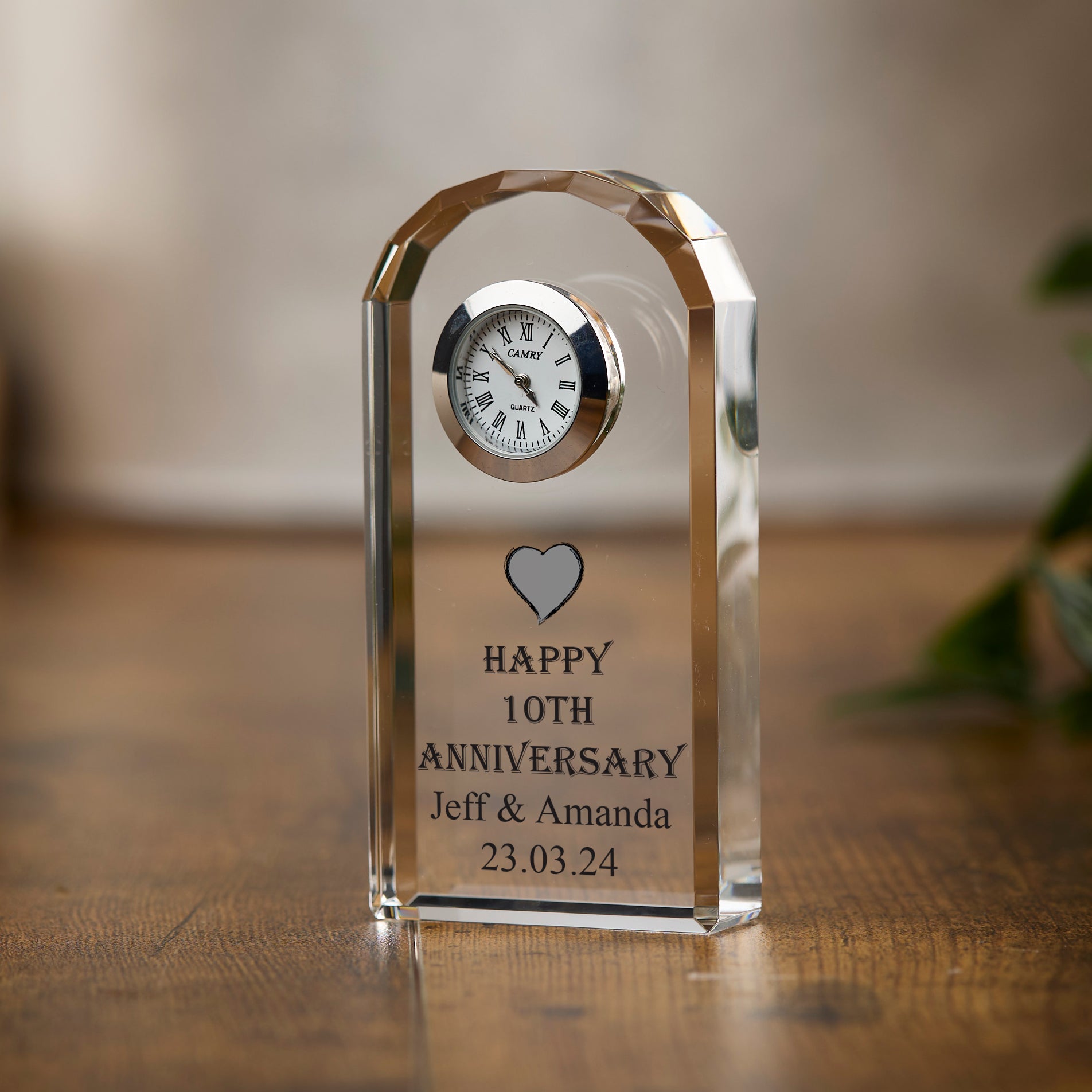 Personalised 10th Wedding Anniversary Crystal Glass Clock Gift