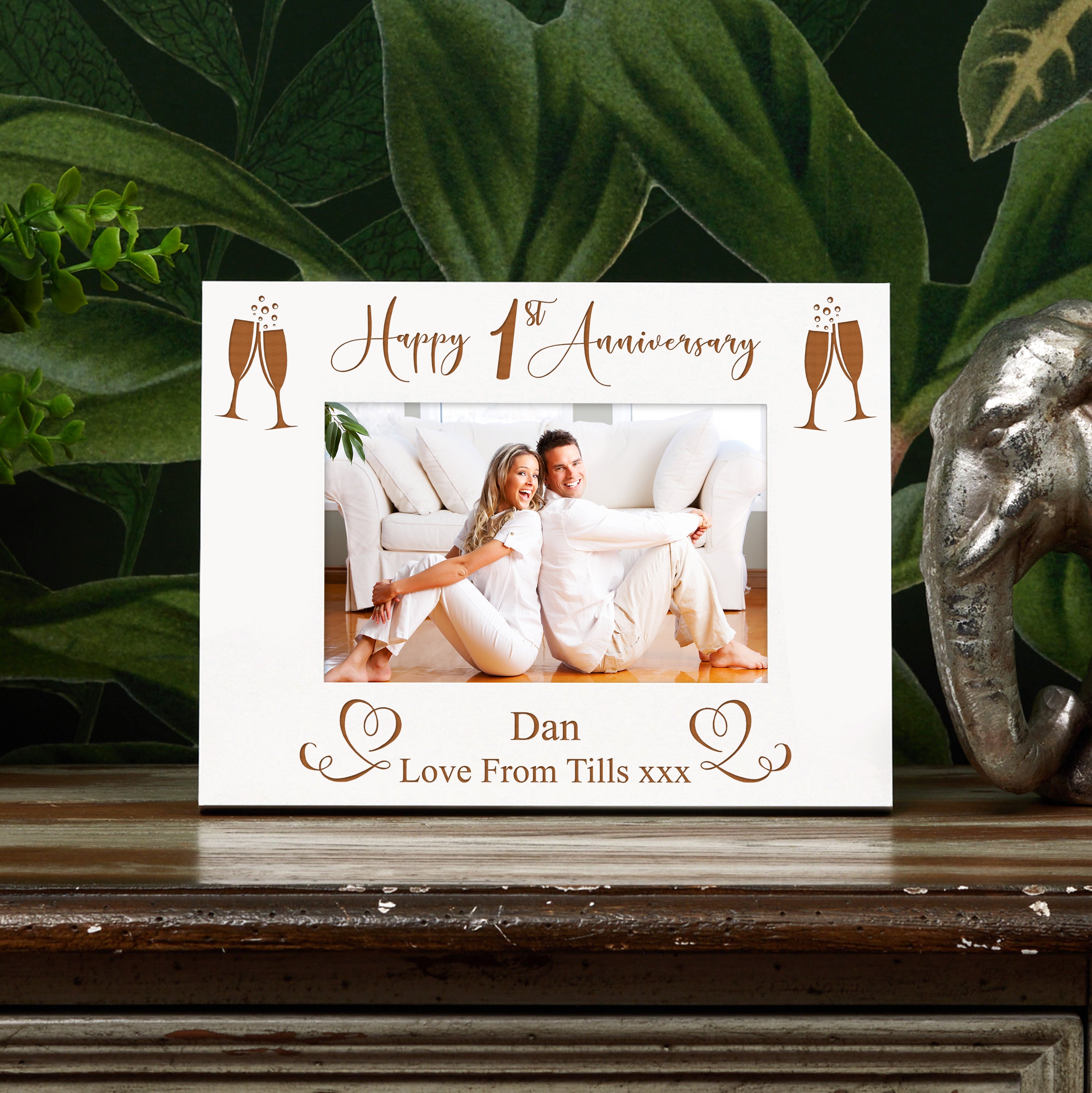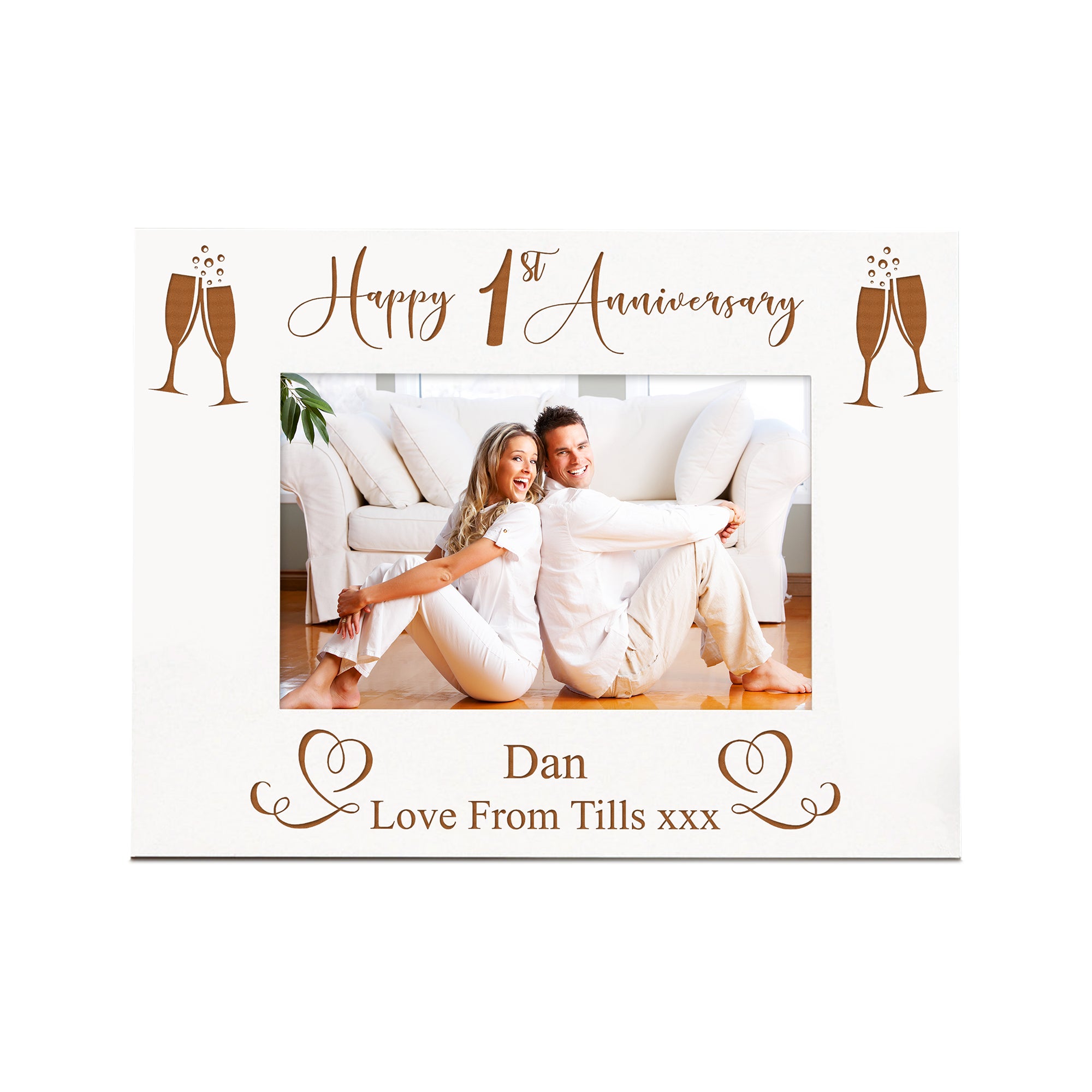 This beautiful wooden photo frame is the perfect way to commemorate your special occasion. Made from high-quality materials and expertly engraved, it's a timeless piece that will last for years to come. With its elegant design and durable construction, this frame is sure to be treasured by you and your loved one. Celebrate your anniversary with a gift that will be cherished forever.