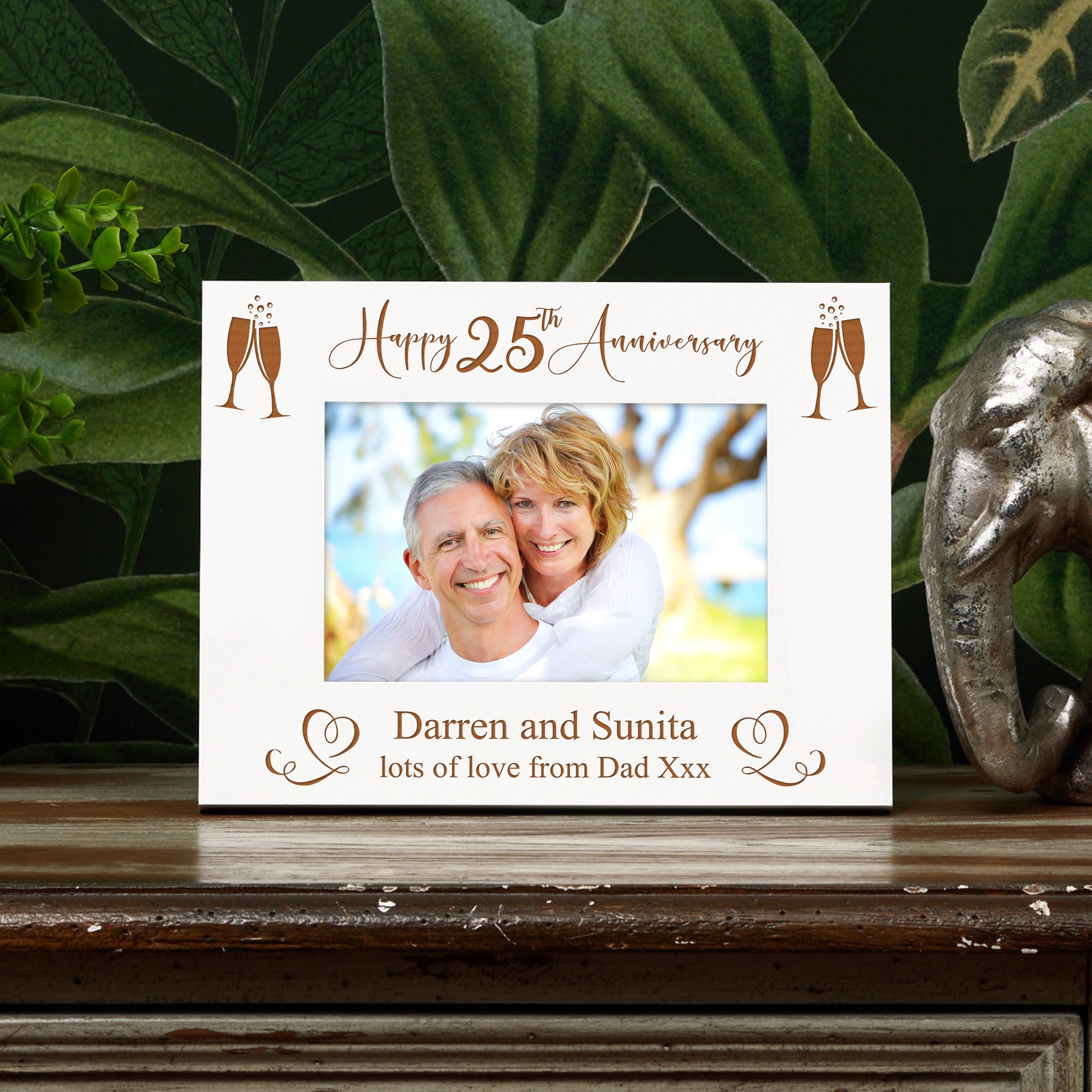 Personalised 25th Anniversary White Wooden Engraved Photo Frame Gift