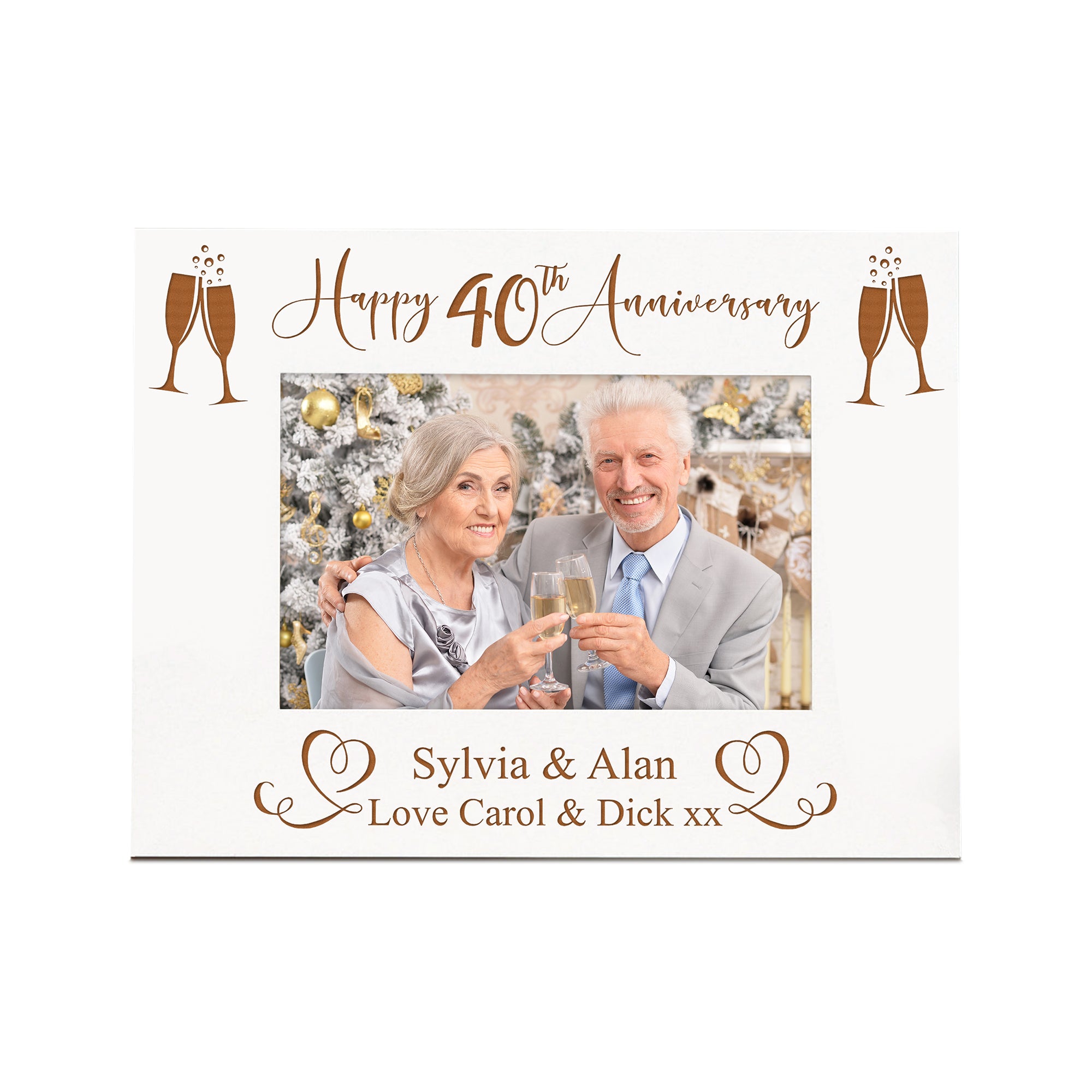 Personalised 40th Anniversary White Wooden Engraved Photo Frame Gift