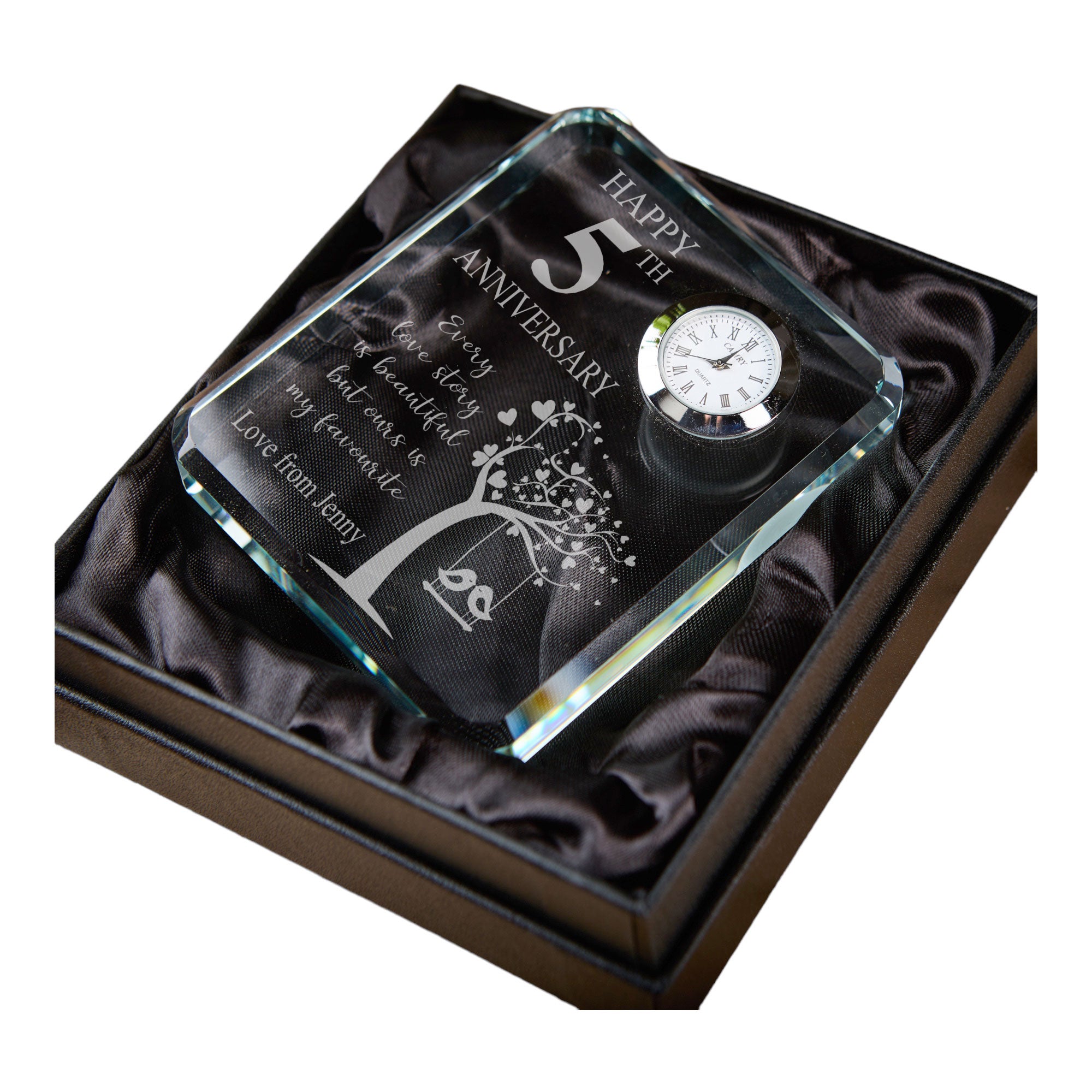 Crystal cut glass which is engraved with the sentiment and personalisation on the bottom line.
