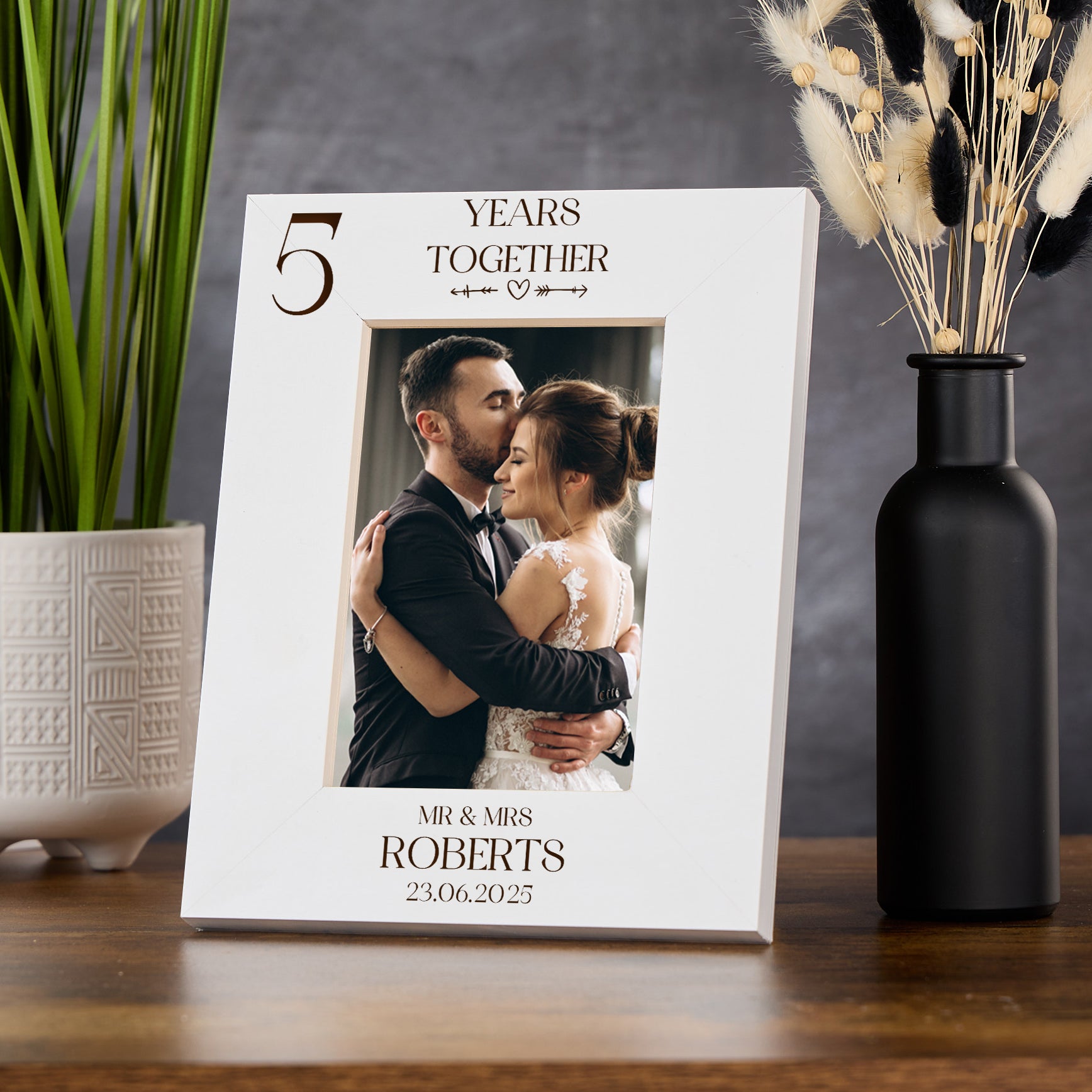 Personalised Elegant 5th Anniversary Wooden Engraved Photo Frame Gift