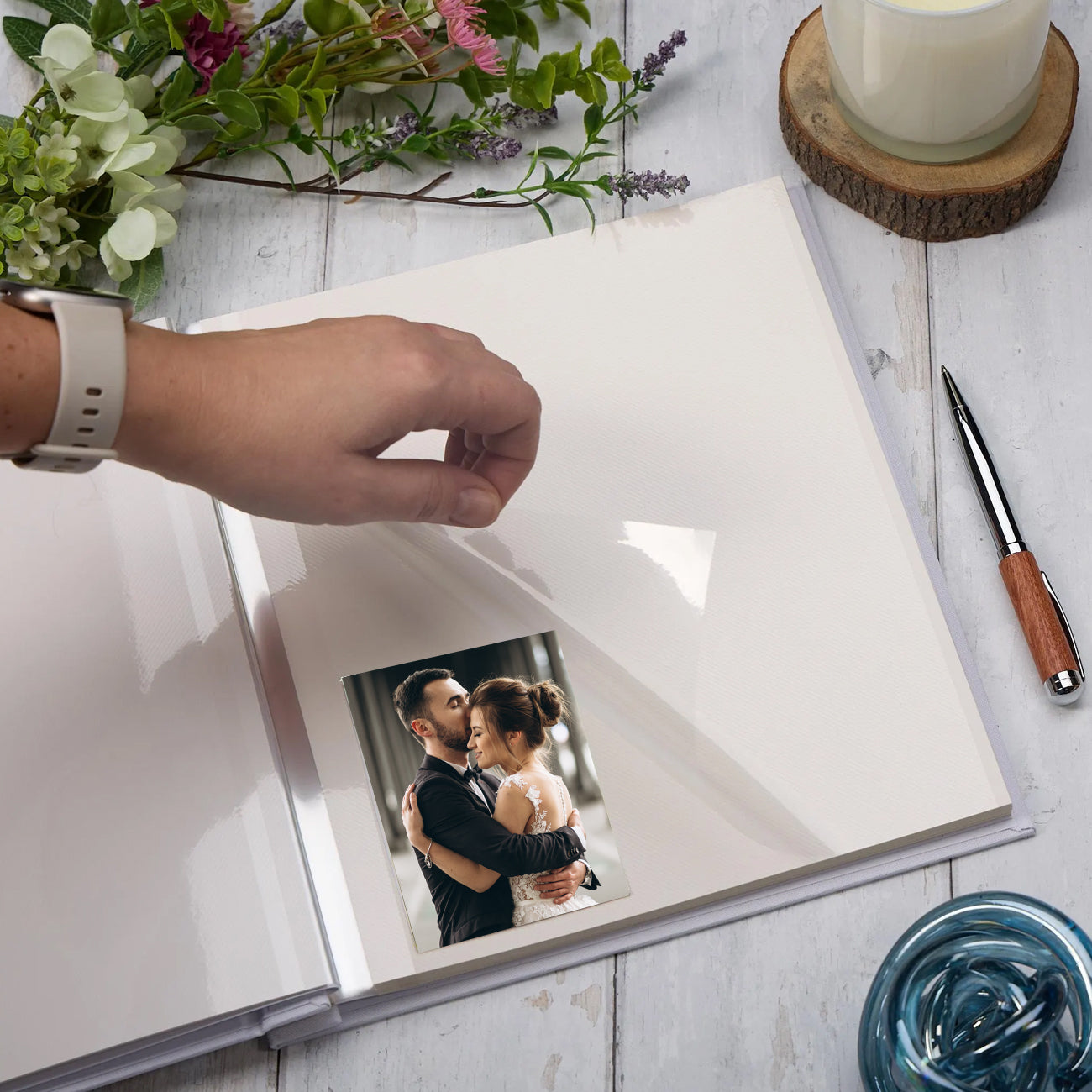 Its acid-free pages keep memories safe from oxidation, while its self-adhesive design allows for photos of any size. The durable linen cover provides protection while its cream colour adds a retro touch. An ideal keepsake gift. This album can be used again and again with its easy to access photos - use a credit card or vinyl squeeze to flatten the protection over the images.