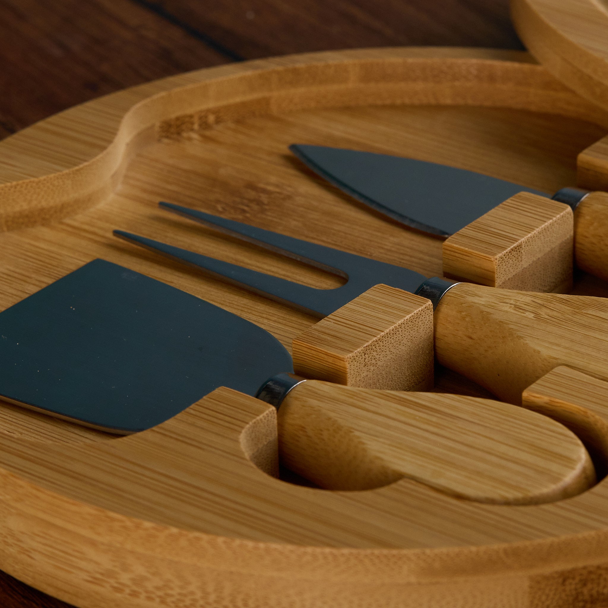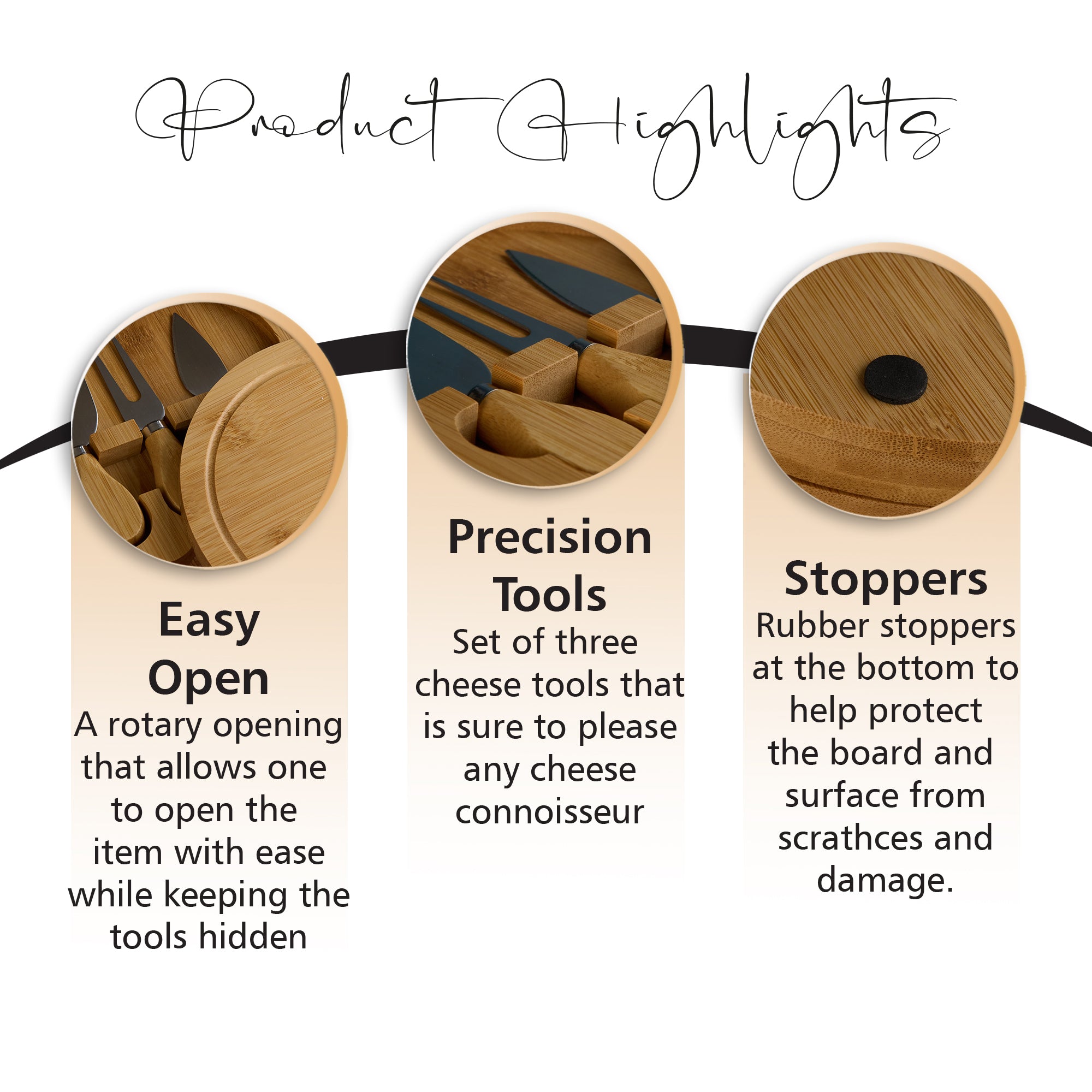 Lovely gift for any occasion such as a wedding, anniversary engagement, new home or at Christmas Crafted with precision and care, this bamboo cheese board is designed to impress. With a 19cm diameter and 3cm thickness, this personalised gift makes a stylish addition to any kitchen. Share the love and joy of cheese with your loved ones this holiday season, or at any special occasion.