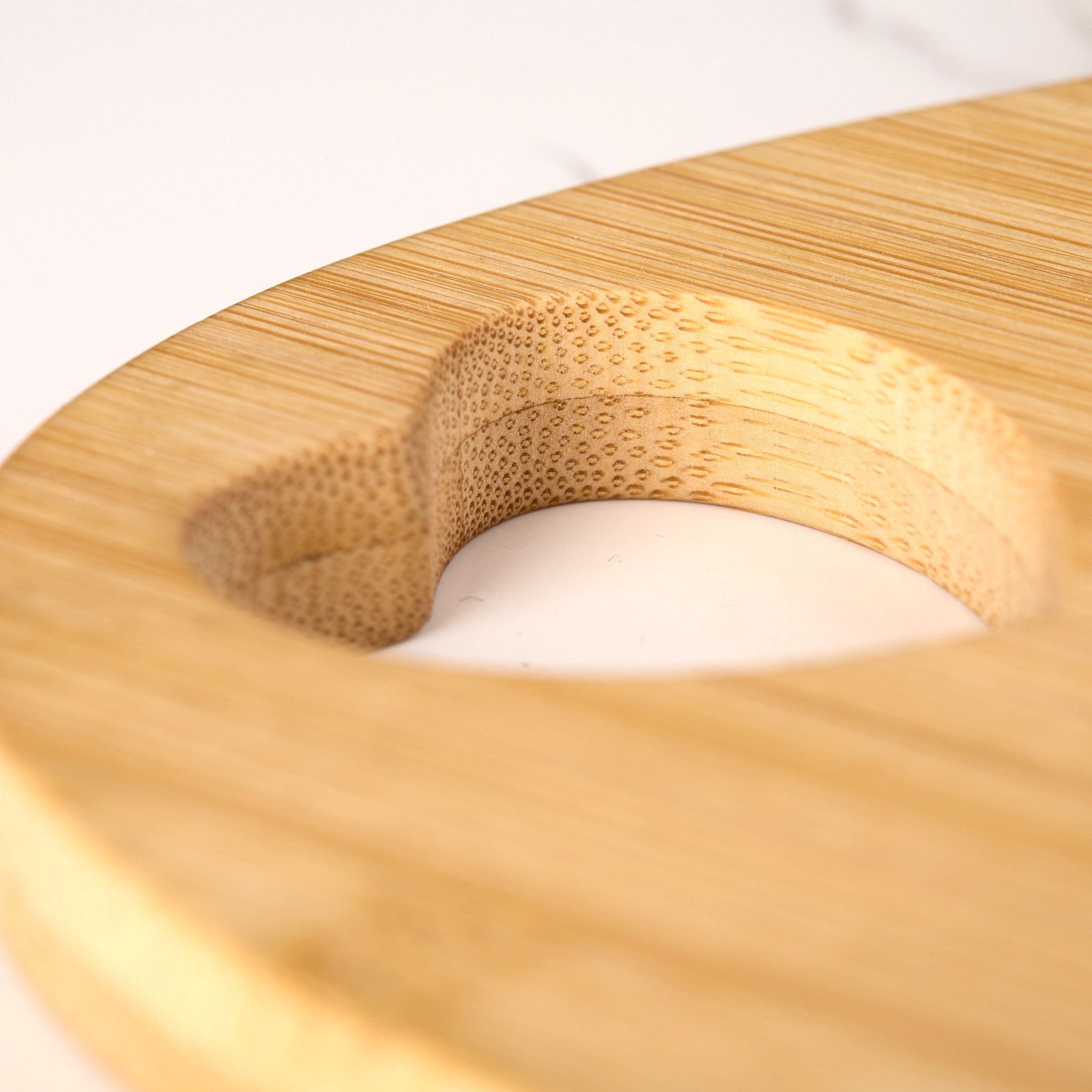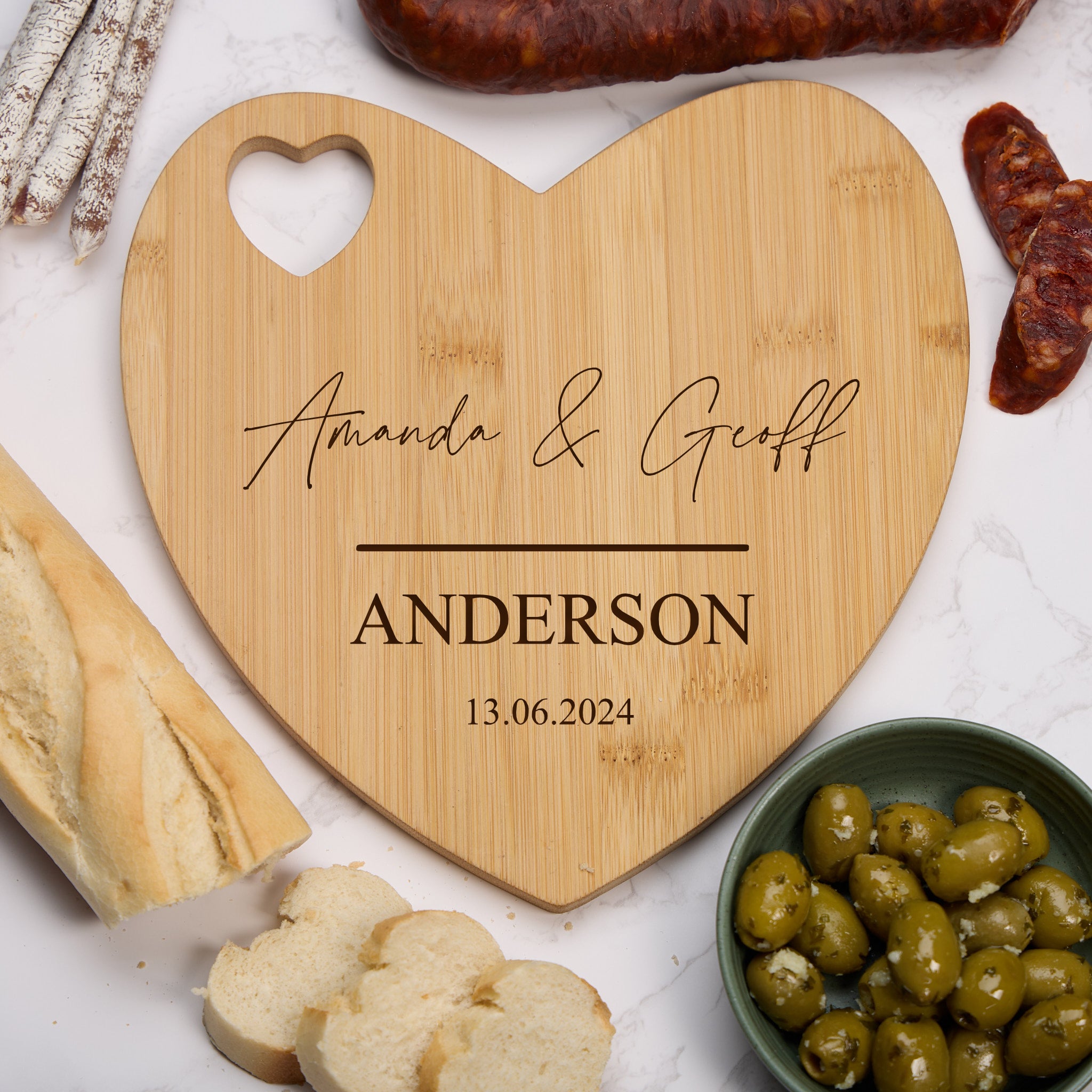 Lovely gift for any occasion such as a wedding, anniversary engagement, new home or at Christmas Crafted with precision and care, this bamboo chopping board is designed to impress. With a 23cm diameter and 1cm thickness, this personalised gift makes a stylish addition to any kitchen. Share the love and joy of food with your loved ones this holiday season, or at any special occasion.