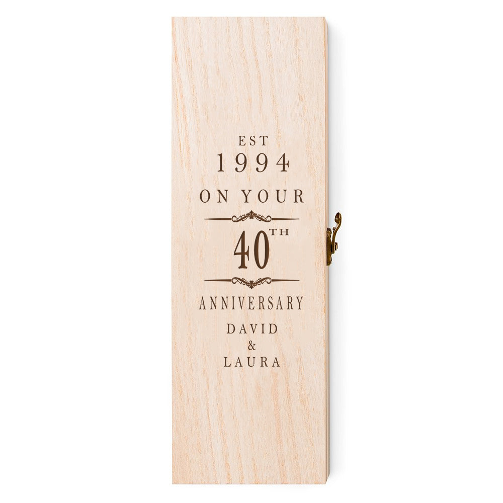 This personalised anniversary wine or champagne box gift is the perfect 40th anniversary gift. Made from high-quality wood, it is sure to impress, and its personalised engraving adds a thoughtful final touch that is sure to be cherished. Give your loved one an unforgettable anniversary present!