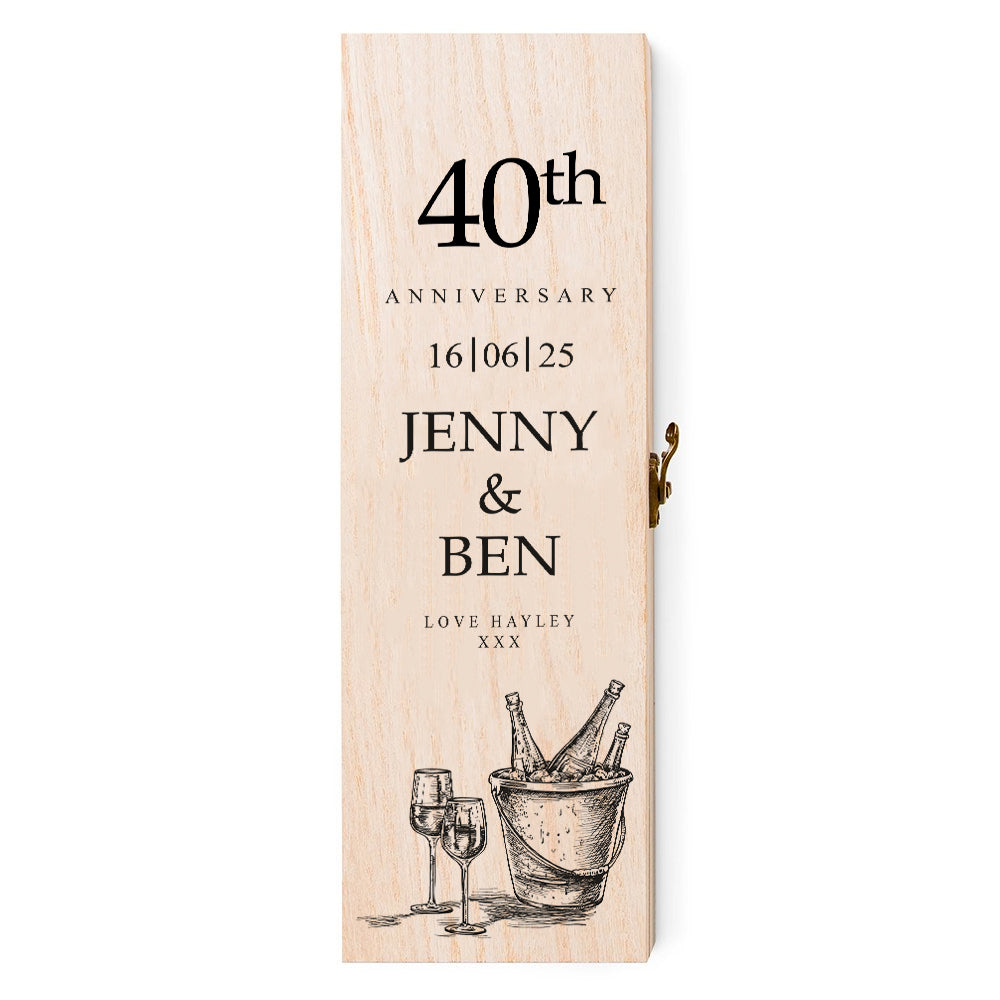 Personalised Wooden Wine or Champagne Box Gift For 40th Anniversary