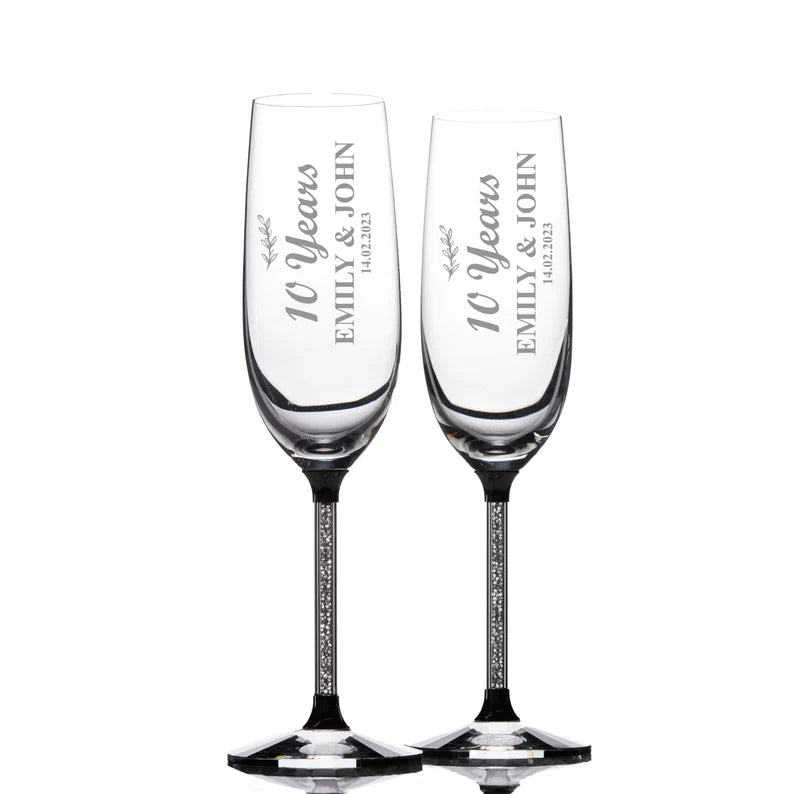 Adding a personalised touch to these glasses make them perfect to toast with. Holding 21cl, these glasses are generously sized, while still keeping the classic shape of a flute. The clean engraving makes this a lifelong gift, and a permanent reminder of your special wedding day. These glasses are also dishwasher safe.