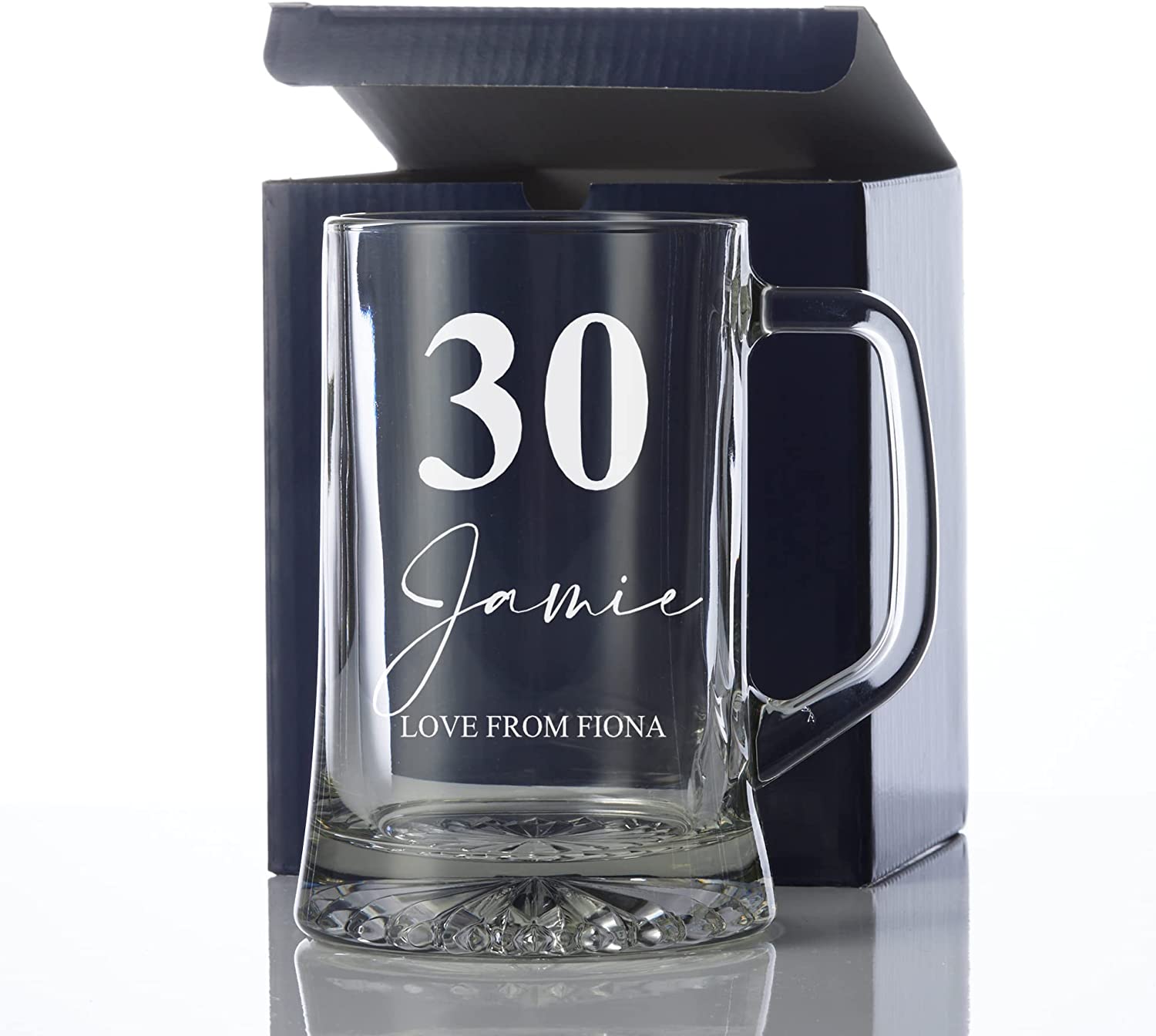 For personalised presents, the adage "it's the thought that counts" is undoubtedly true. The thought and consideration you put into choosing the gift will be evident if you have it personalized for the recipient. The UK Gift Store presents the best gift idea for your husband or brother’s 30th birthday: a customised pint-sized beer tankard. This tankard can be engraved with a sweet message of your choice. And if your intended receiver is a beer-lover, what else are you waiting for? Order our laser engraved customised 30th birthday tankard and we’ll send it in a gift box.