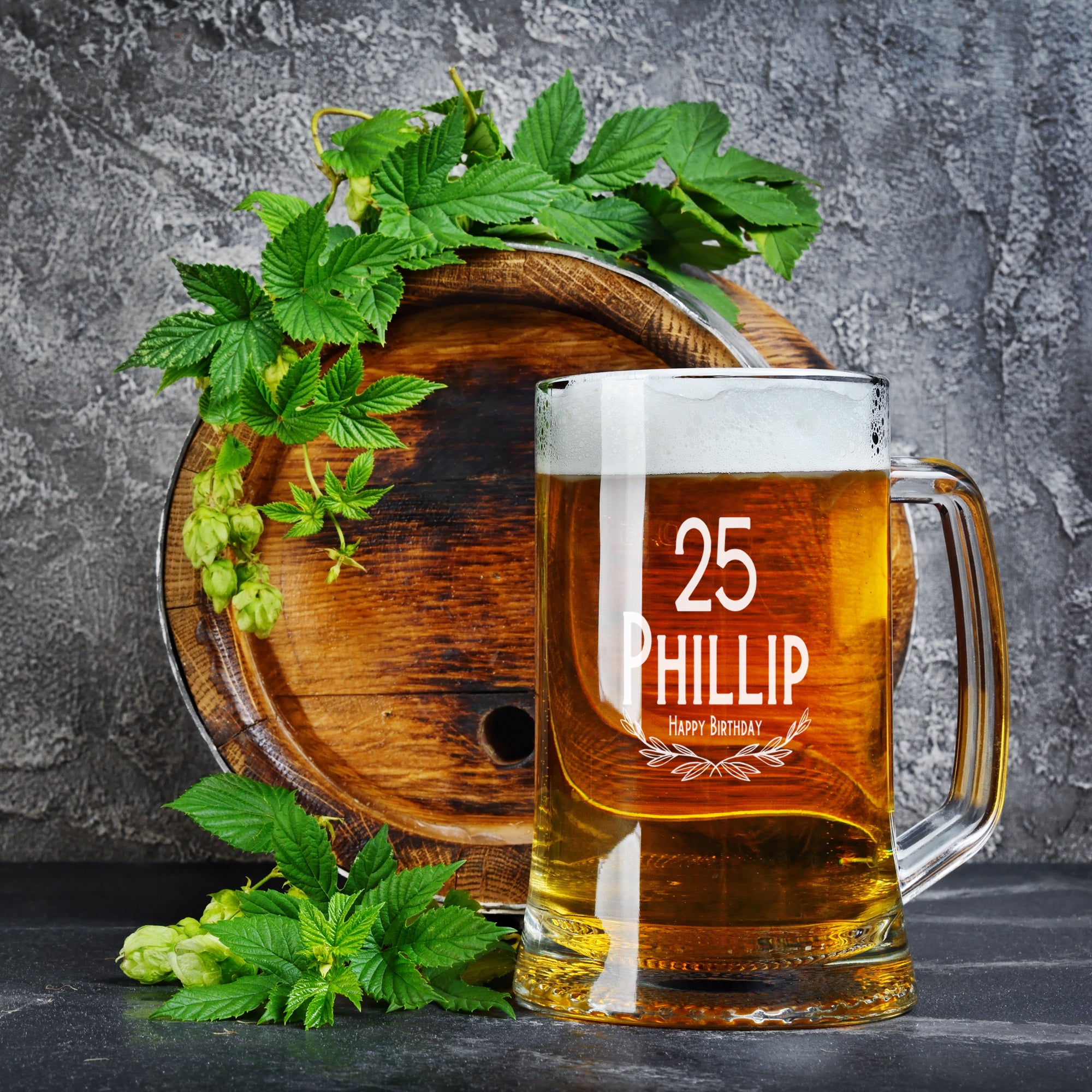 A pint glass can be used for many different things. Additionally, it has been the industrial norm for drinking beer these days. For your beer-drinking buddies, it is the perfect present because of this. Our beer tankard glasses can be customised in any way, and this one makes the best birthday gift. You can ask us to inscribe this bespoke tankard with any age, using our laser technique. All our beer glass tankards are shipped in beautiful gift boxes which adds to the charm of the overall gift.