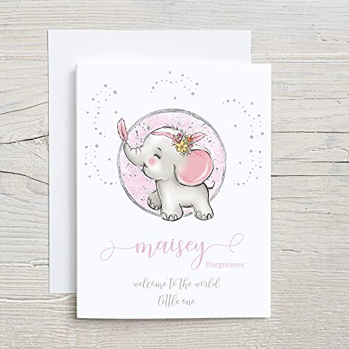 Personalised Welcome to the World New Baby Girl Card Blue Elephant Design