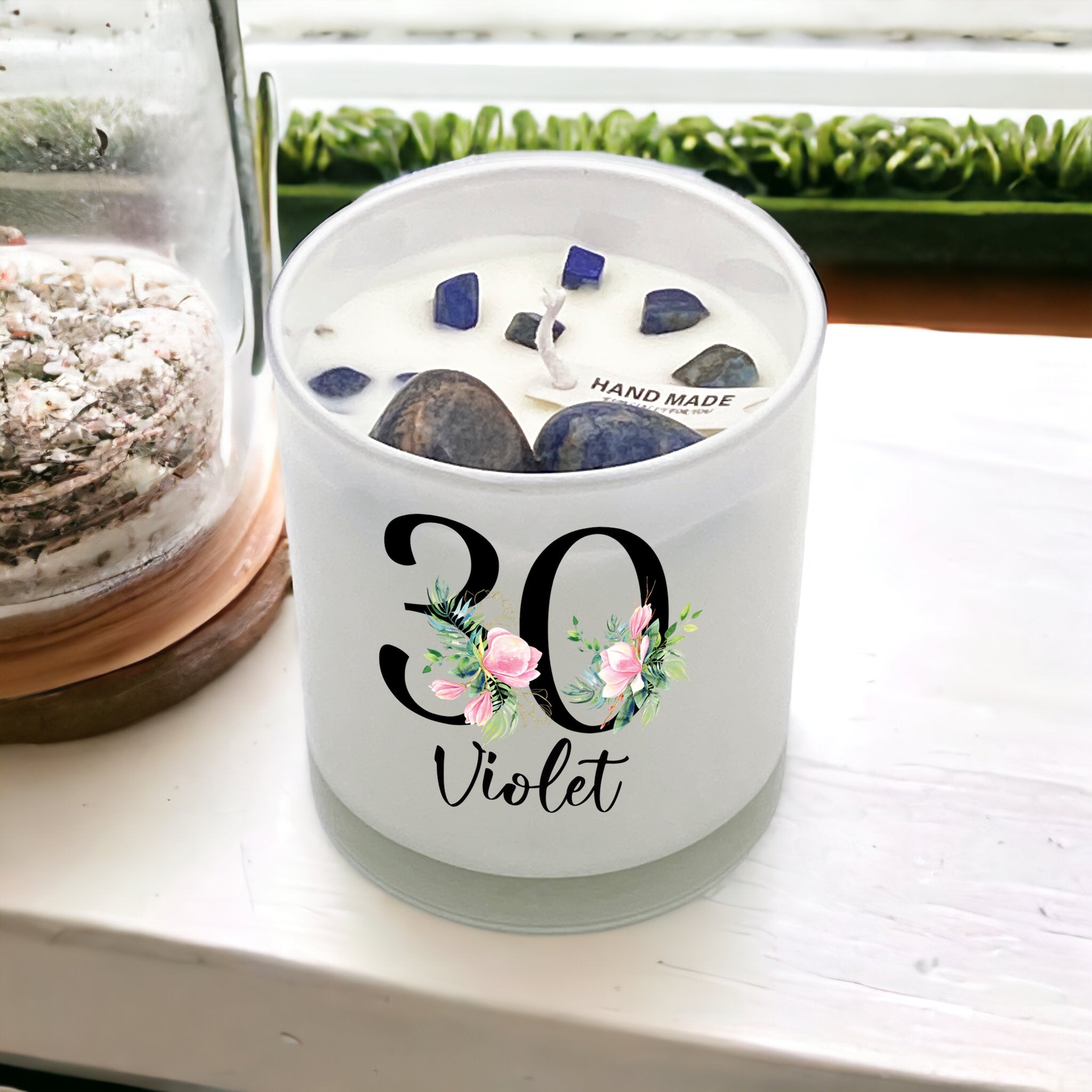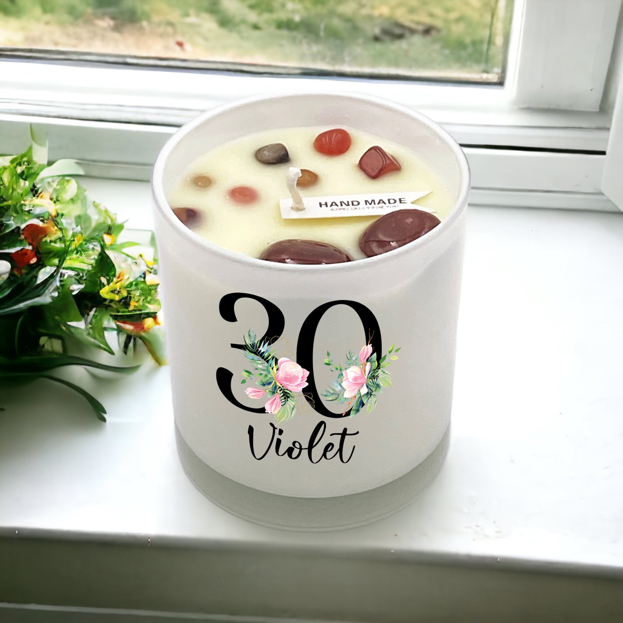 A beautiful candle with embellishments decorating the candle, making that ever so special.