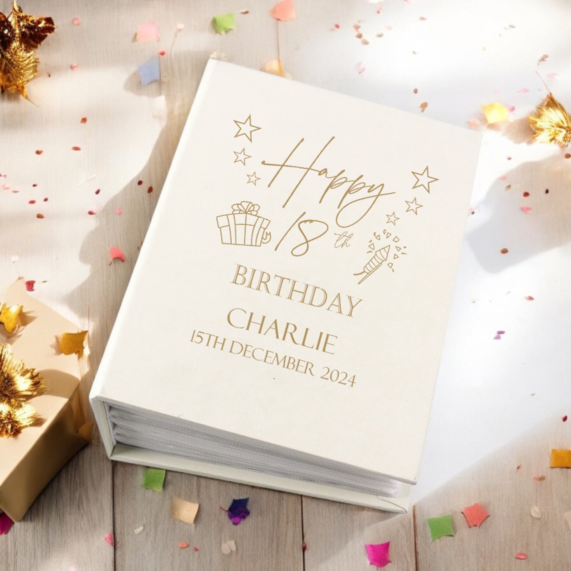 A great way to commemorate the special milestone of turning 18. The personalised design allows for a unique, one-of-a-kind gift that will be cherished for years to come. With 100 sleeves and the capacity to hold 6x4 photos, there is ample space to capture the memories of this important birthday celebration.