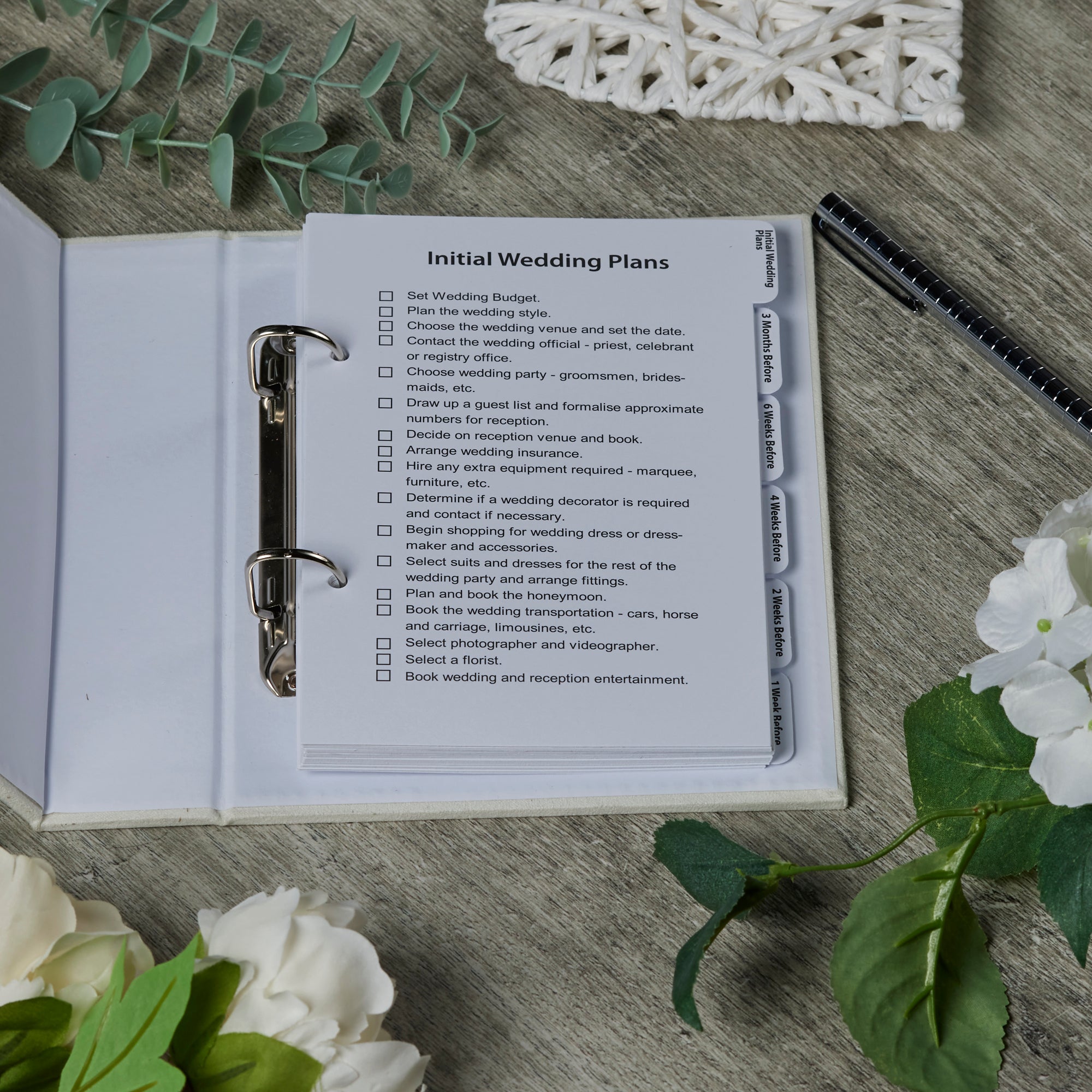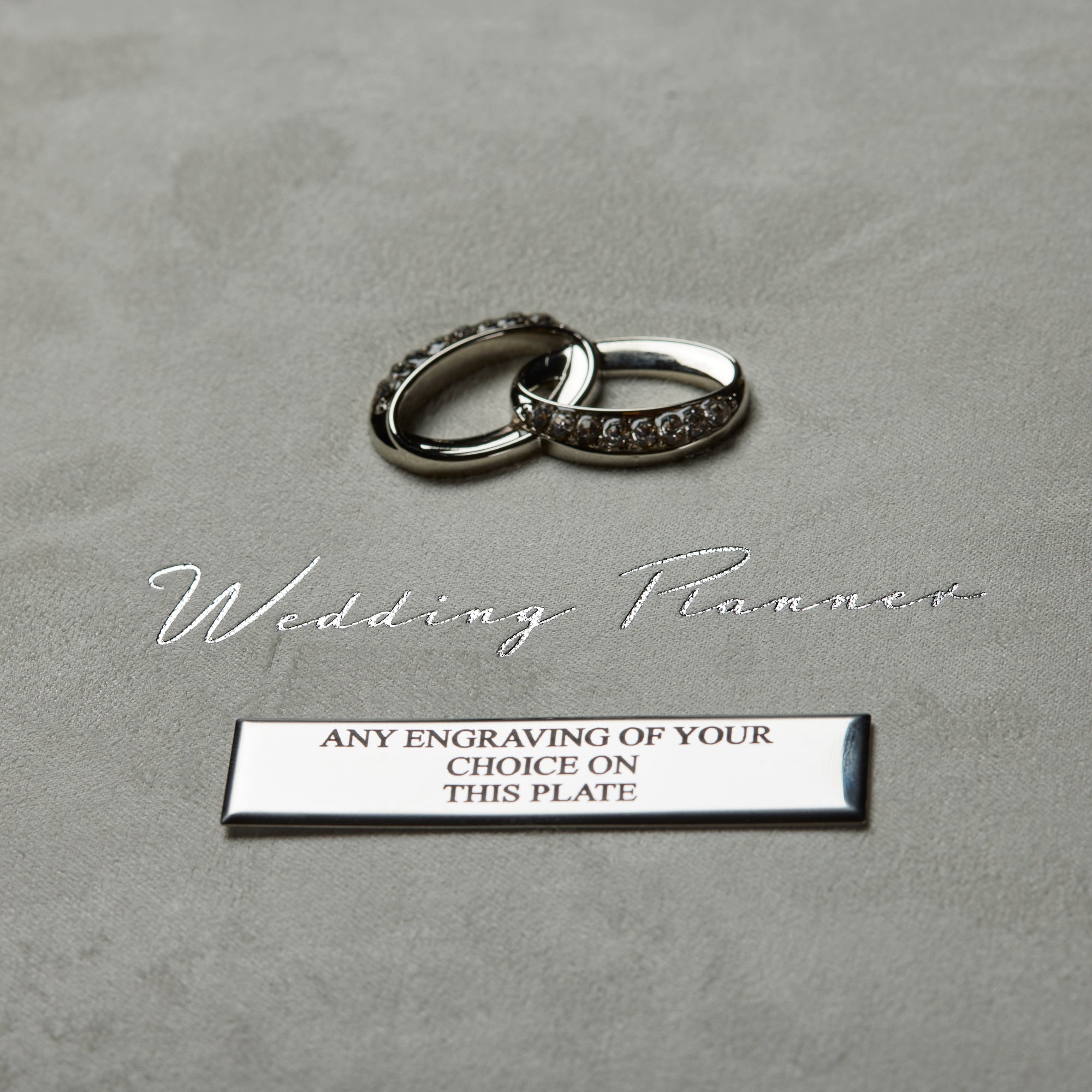 Features approx 80 pages where you can write, plan and create! Including a useful front page of initial wedding plans covering everything from venue and dress to flowers and guests! The planner is then sectioned off with key dates which include 3 months before, 6 weeks before, 4 weeks before, 2 weeks before and finally 1 week before. Each "week before" section has a front covering page which details some key reminders which you will need to arrange at that time frame so will help you get everything planned as it should be. A lovely piece which will be greatly received by the happy couple - an ideal engagement gift. Supplied in an Amore presentation gift box. Dimensions: (approx) H:21 W:16 D:5cm The personalisation is laser engraved for perfection onto a steel plaque as shown.