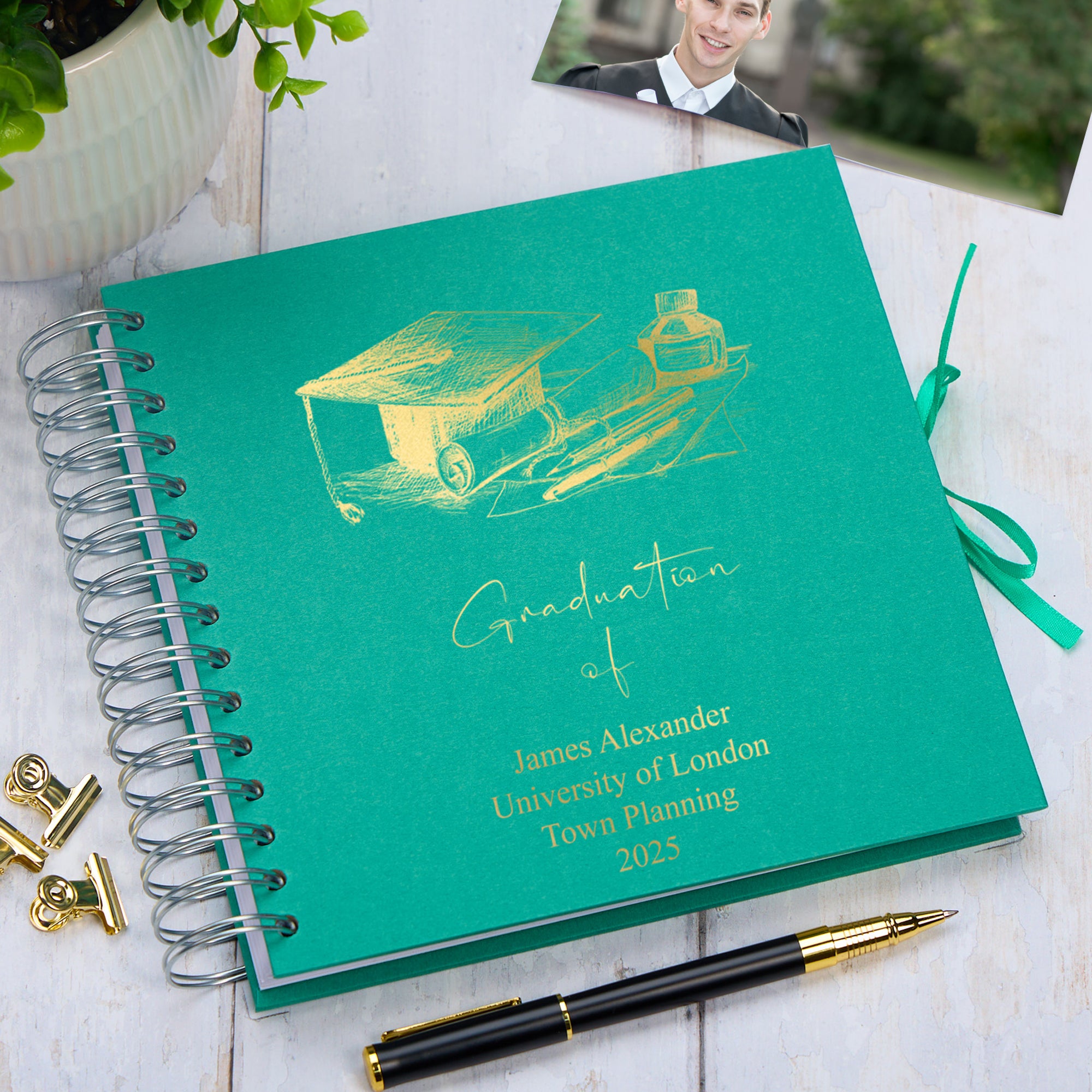 Keep one's memories immortalised in this stunning Spiral Bound Kraft Scrapbook with an eye catching Metallic Foil finish and personalised details. Bring the blank pages to life by adding a variety of papers, embellishments and cardstock to complement personal details such as photographs, cards and other memorabilia. You can stamp in dates and make annotations to the pages easily, and even create fold-out pieces and pockets if you wish!