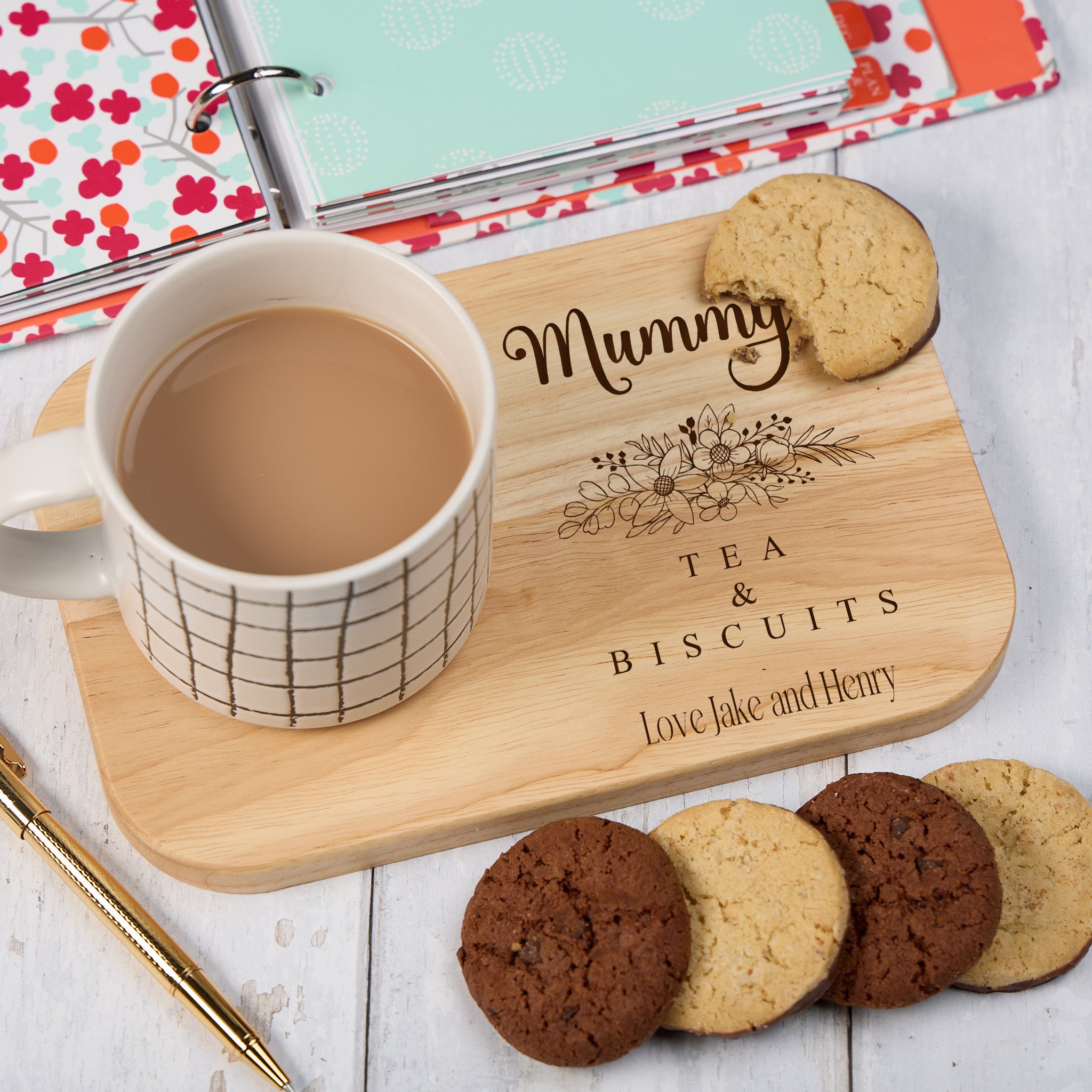 This personalised wooden drinks board is a thoughtful and unique gift for any occasion, including Mother's Day, Father's Day, birthdays, and Christmas. It's expertly engraved and beautifully crafted to add a personal touch to your serving experience. Measuring 23cm x 15cm, it's the perfect size for serving tea, coffee, or biscuits in style.