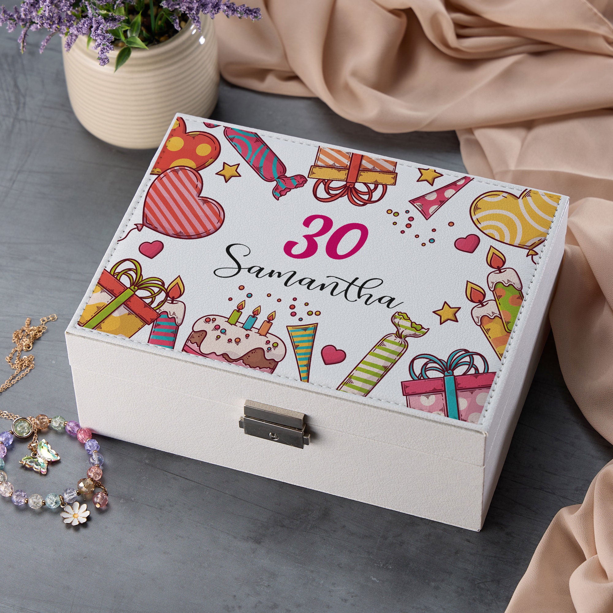Store those sparkly things in style with this personalised white faux leather jewellery box.