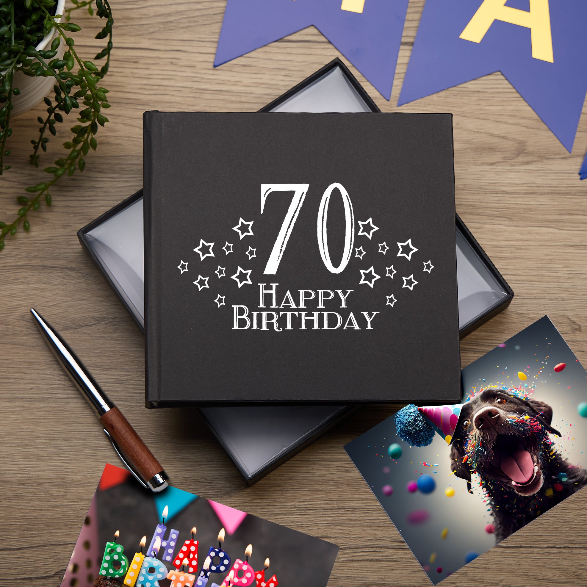 70th Birthday Black Photo Album Gift For Him With Star Design