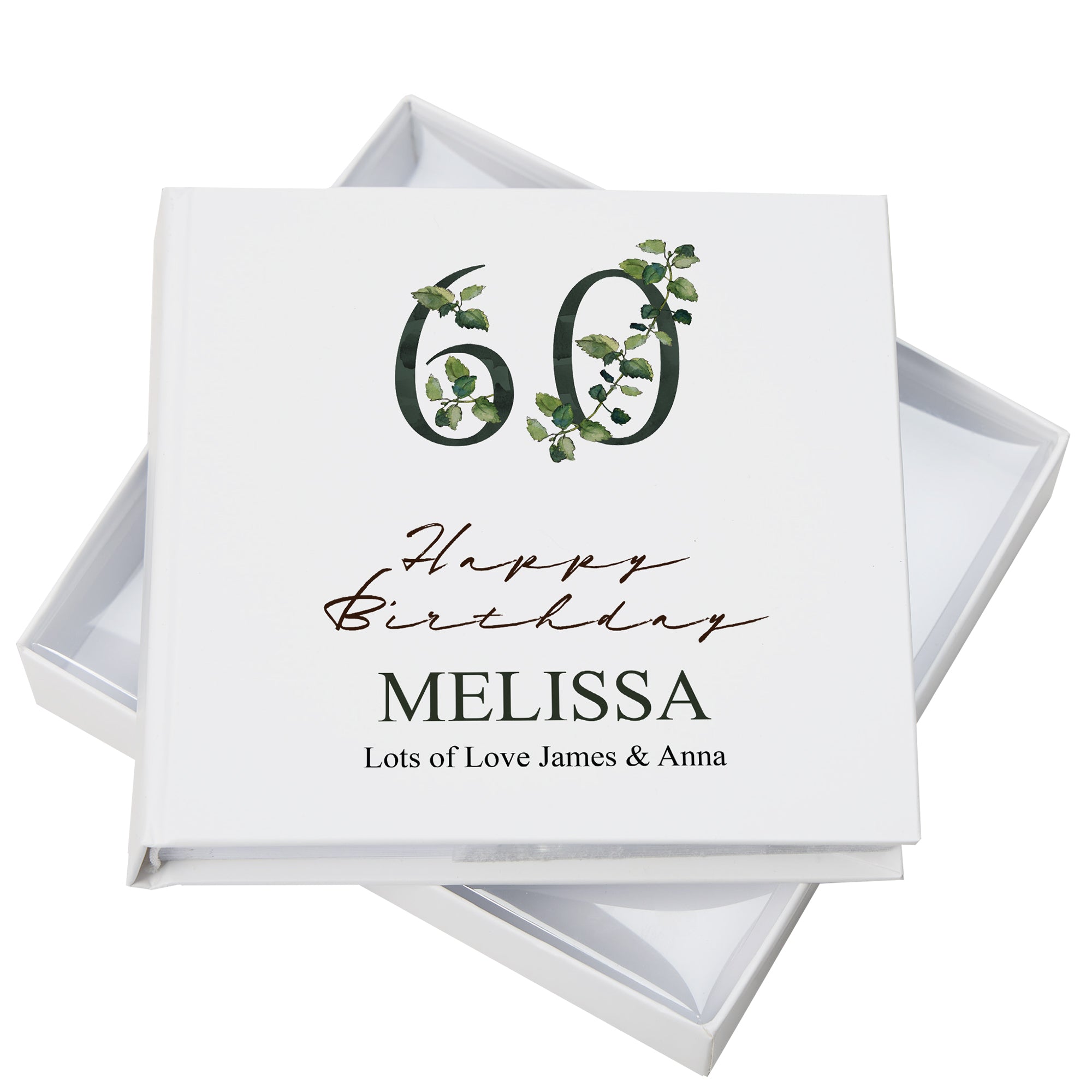 This elegant album features a tasteful green leaf motif and a heartfelt sentiment on the cover, personalised with the recipient’s name and message to add a unique, personal touch. It holds 50 slip-in photos sized 4" x 6", each accompanied by ample space to write notes, stories, or memorable dates beside the pictures. Measuring approximately 18.5cm x 19.5cm, it’s compact yet spacious enough to preserve cherished moments. Delivered boxed, it makes an ideal, ready-to-gift present for commemorating a special 60th birthday.